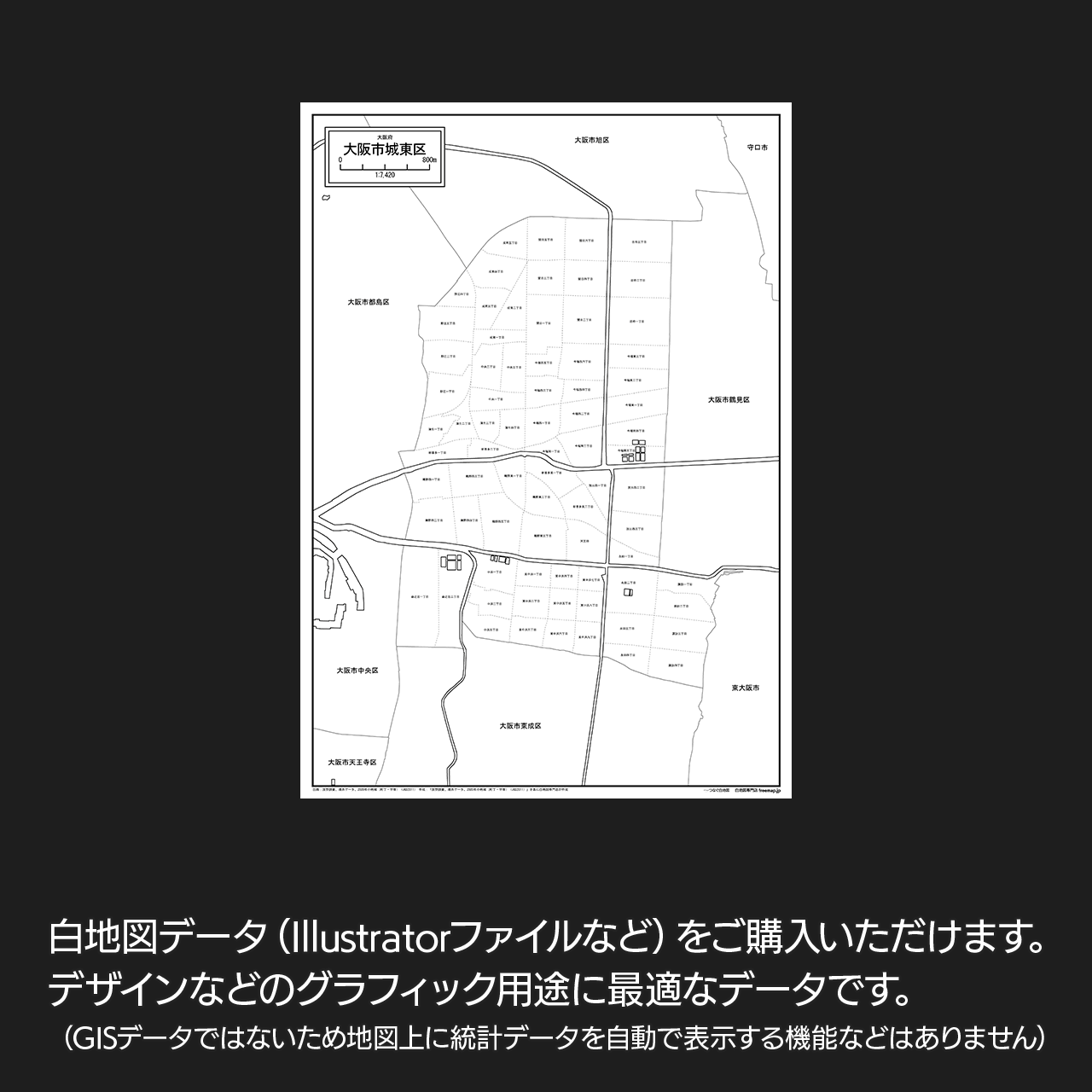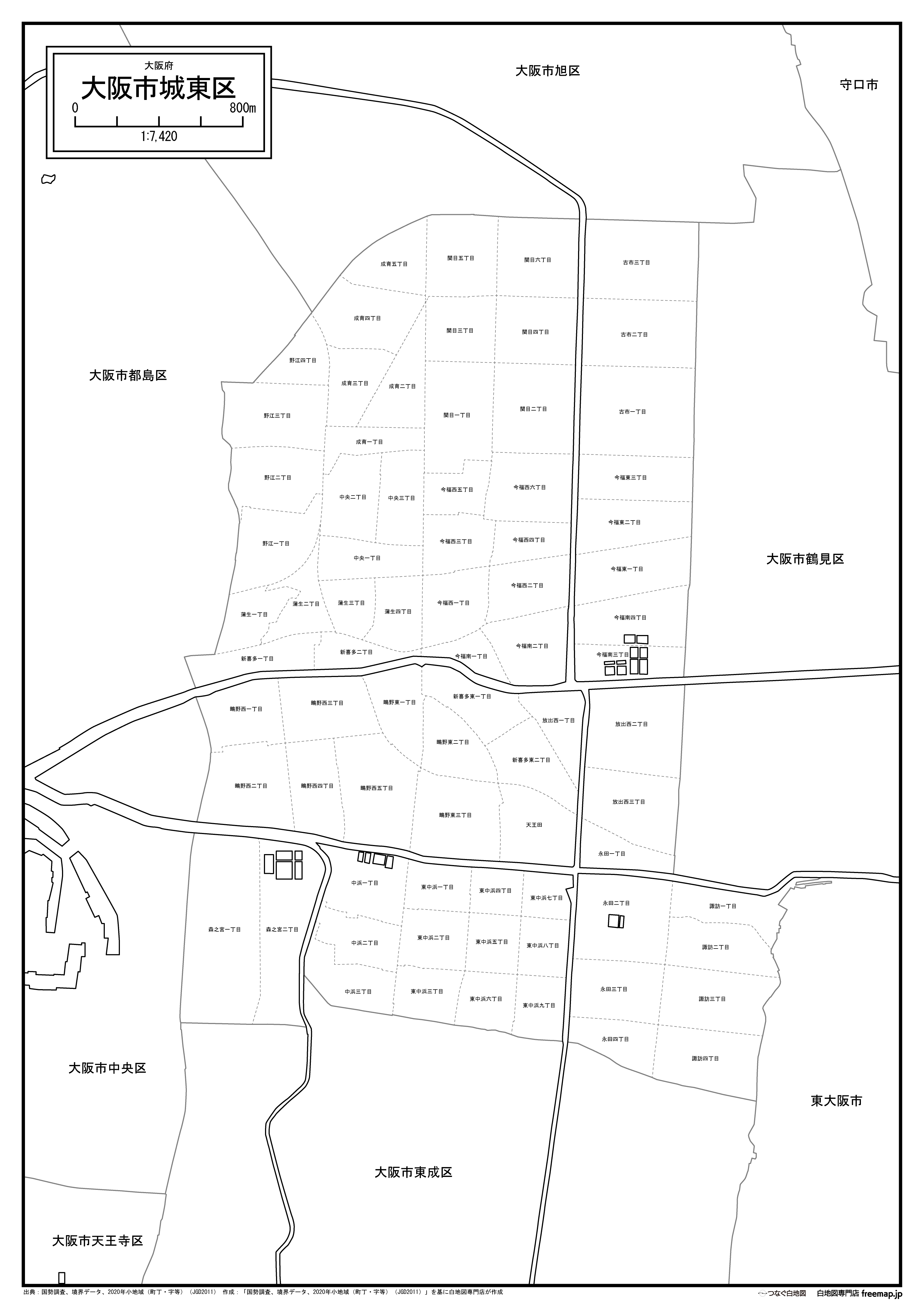 大阪市城東区の町名(町丁目)も記載した地図データです。
