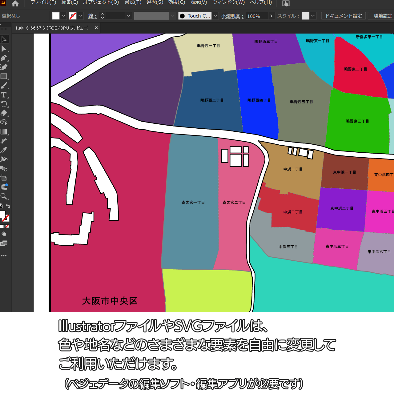 AiファイルはAdobe Illustratorで再編集可能な白地図データです。