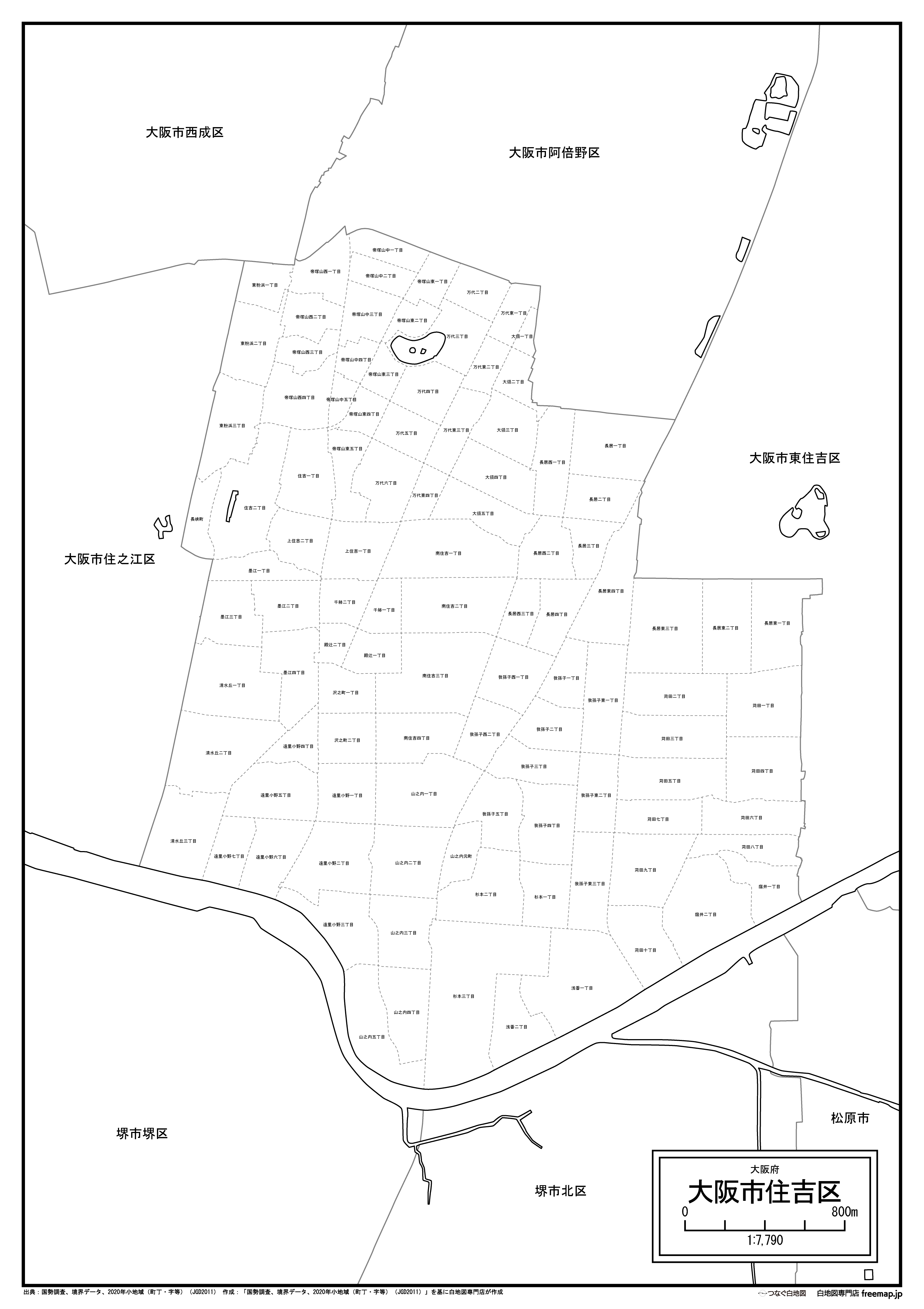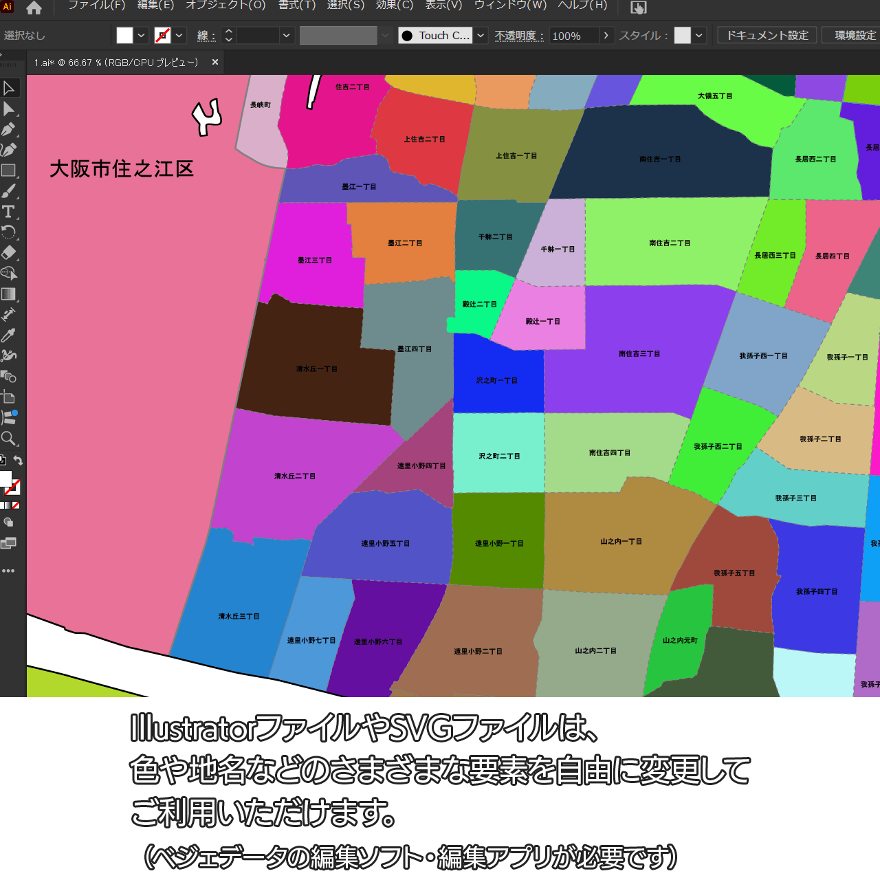 大阪市住吉区の町名(町丁目)も記載した地図データです。