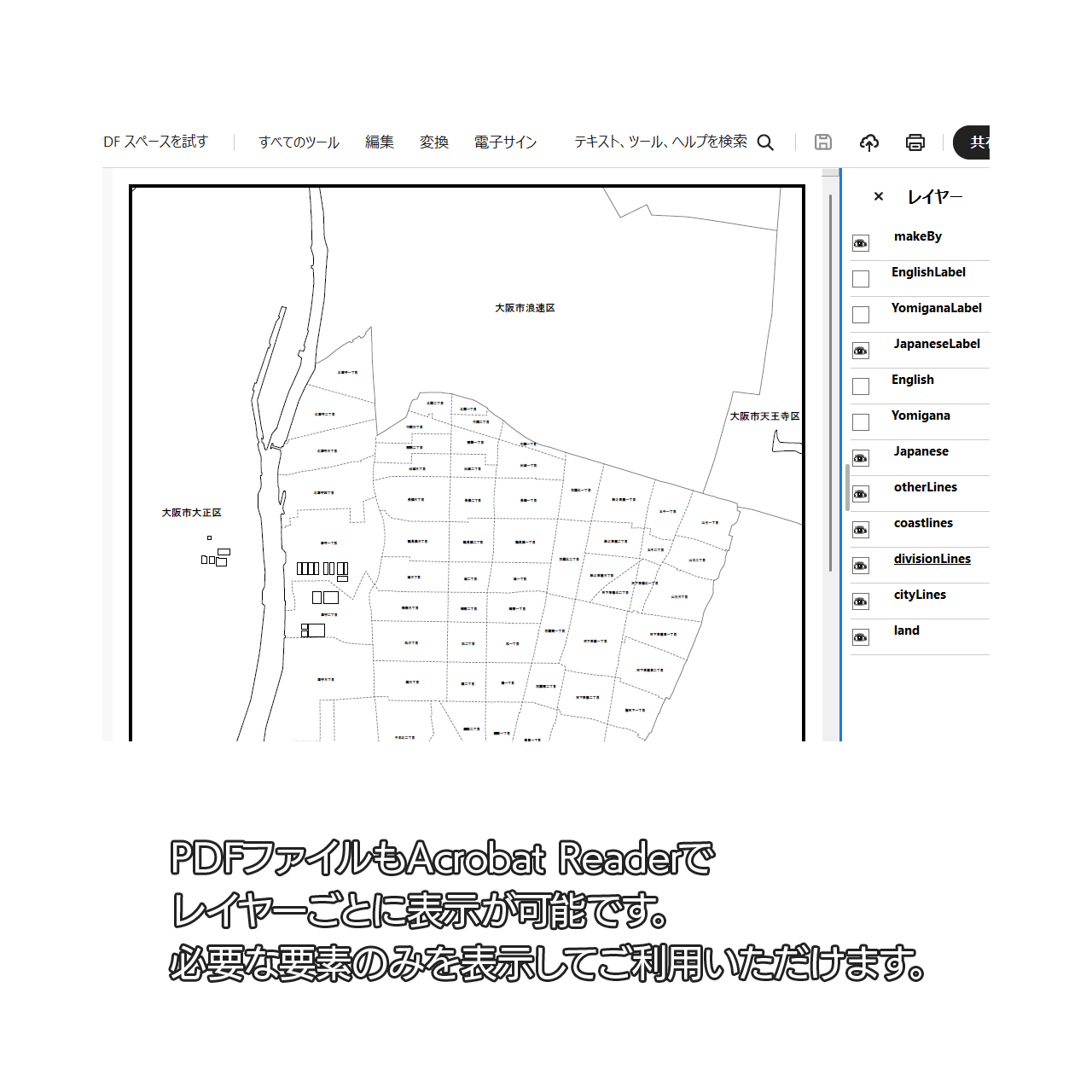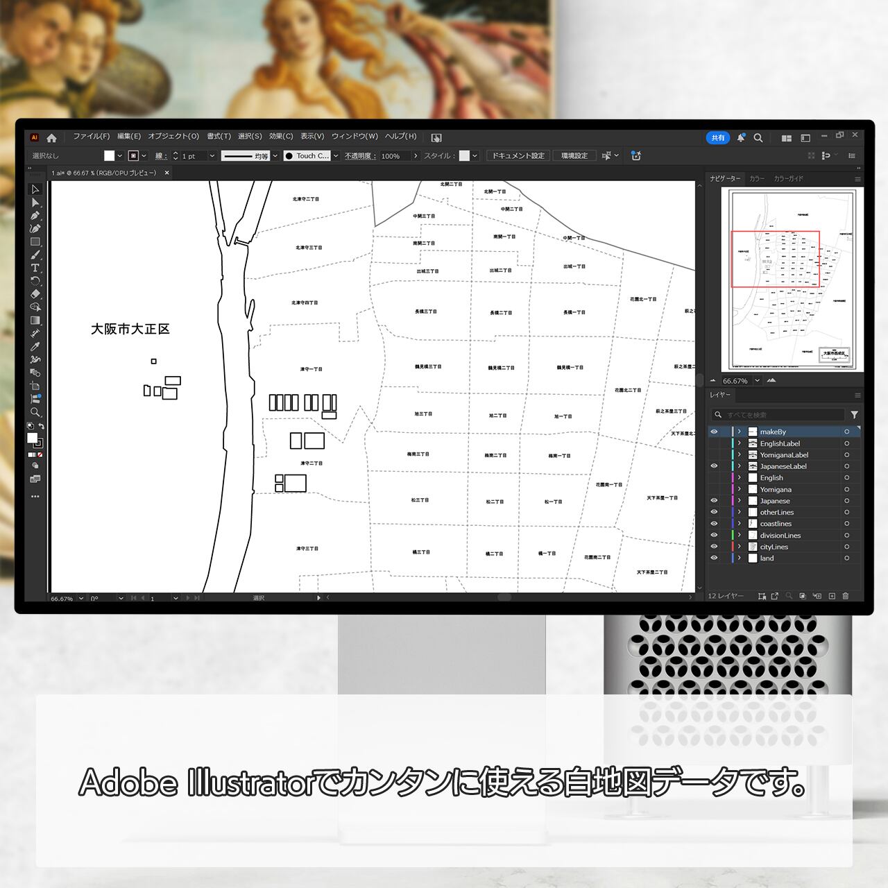 大阪市西成区:町名も記載の地図データ(PDF・Aiファイル)