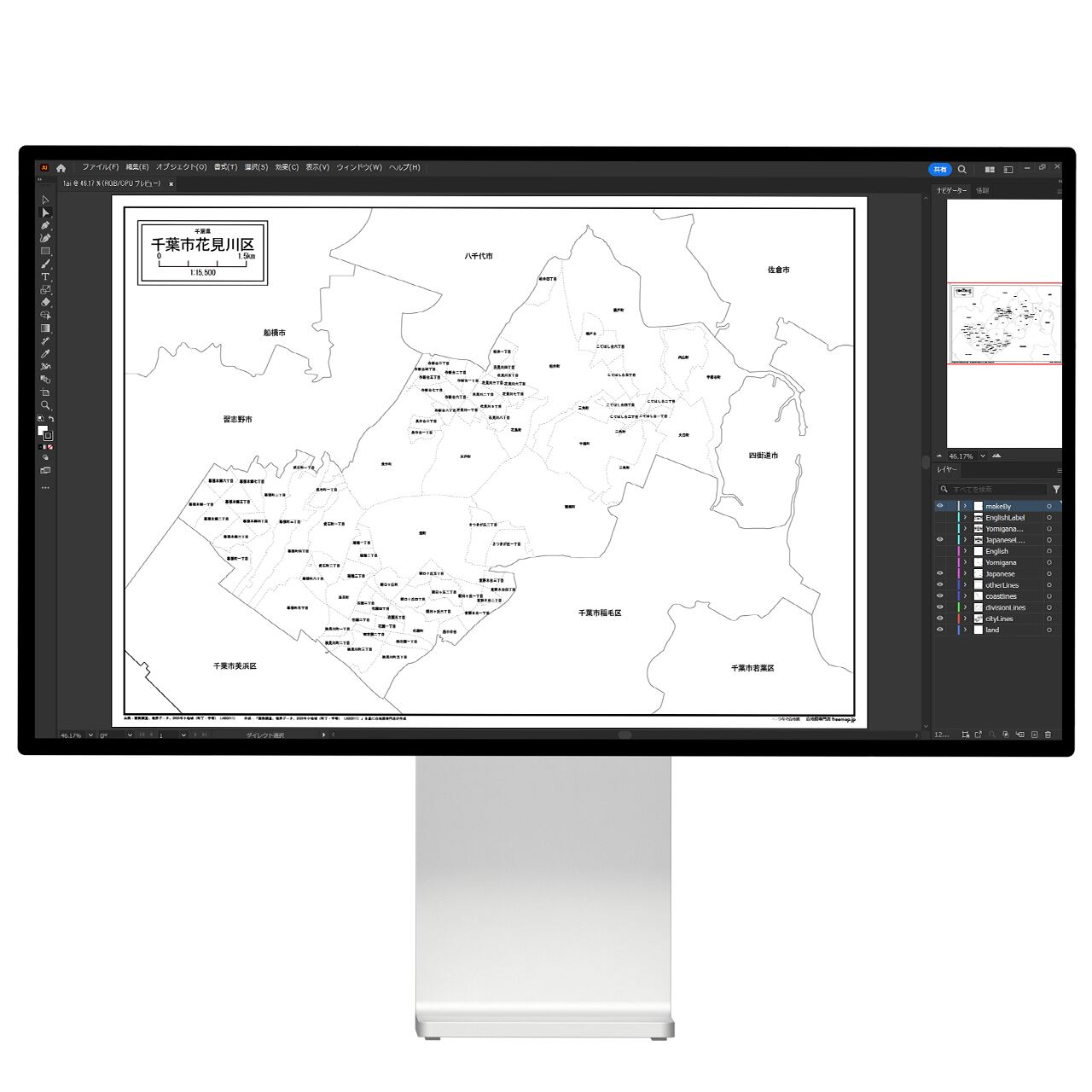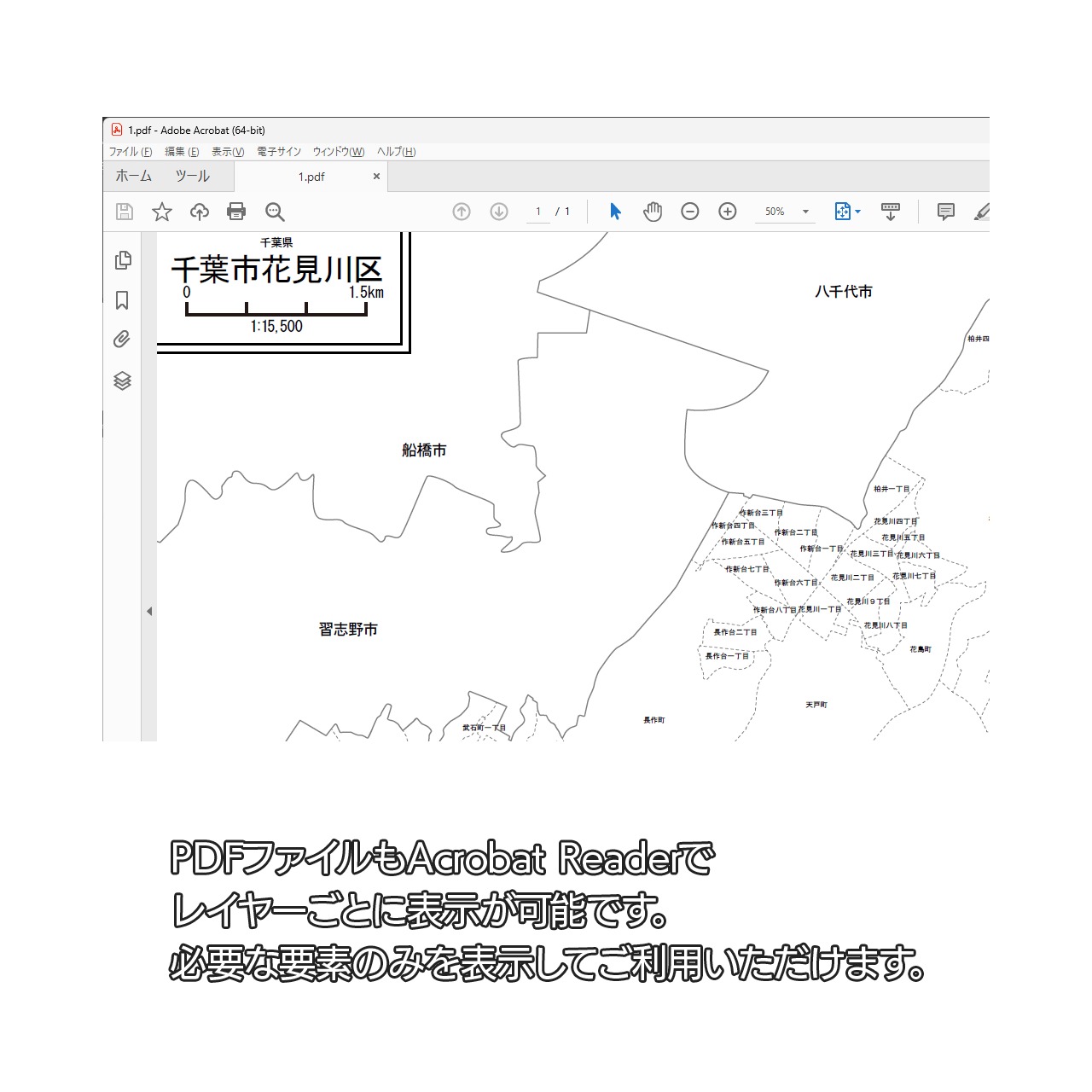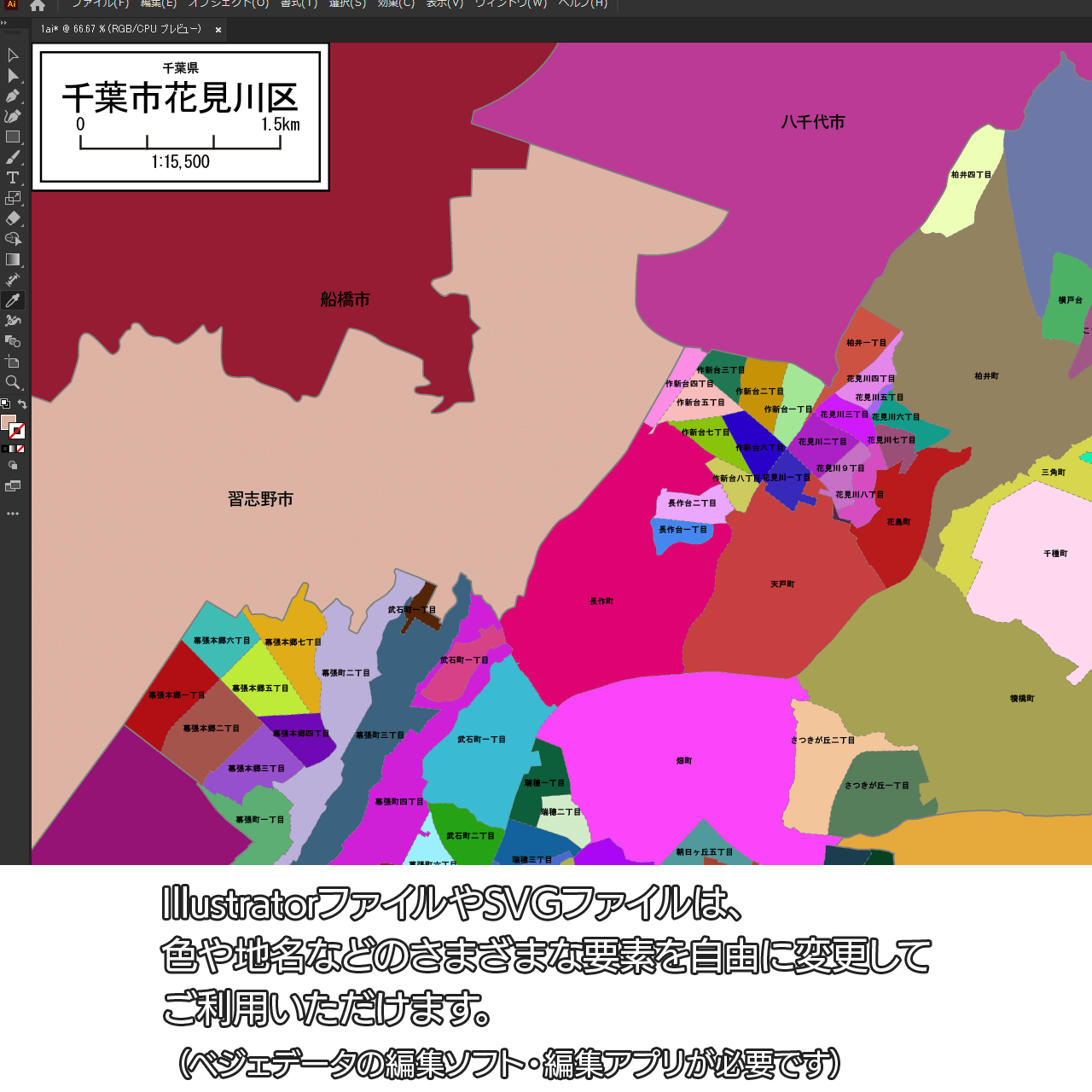 千葉市花見川区:町名も記載の地図データ(PDF・Aiファイル)