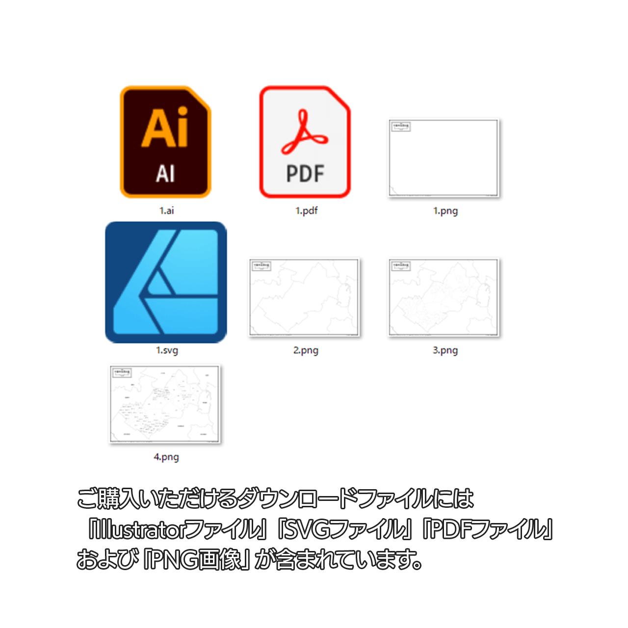 PDF・Ai・SVG形式がセットでご利用いただけます。