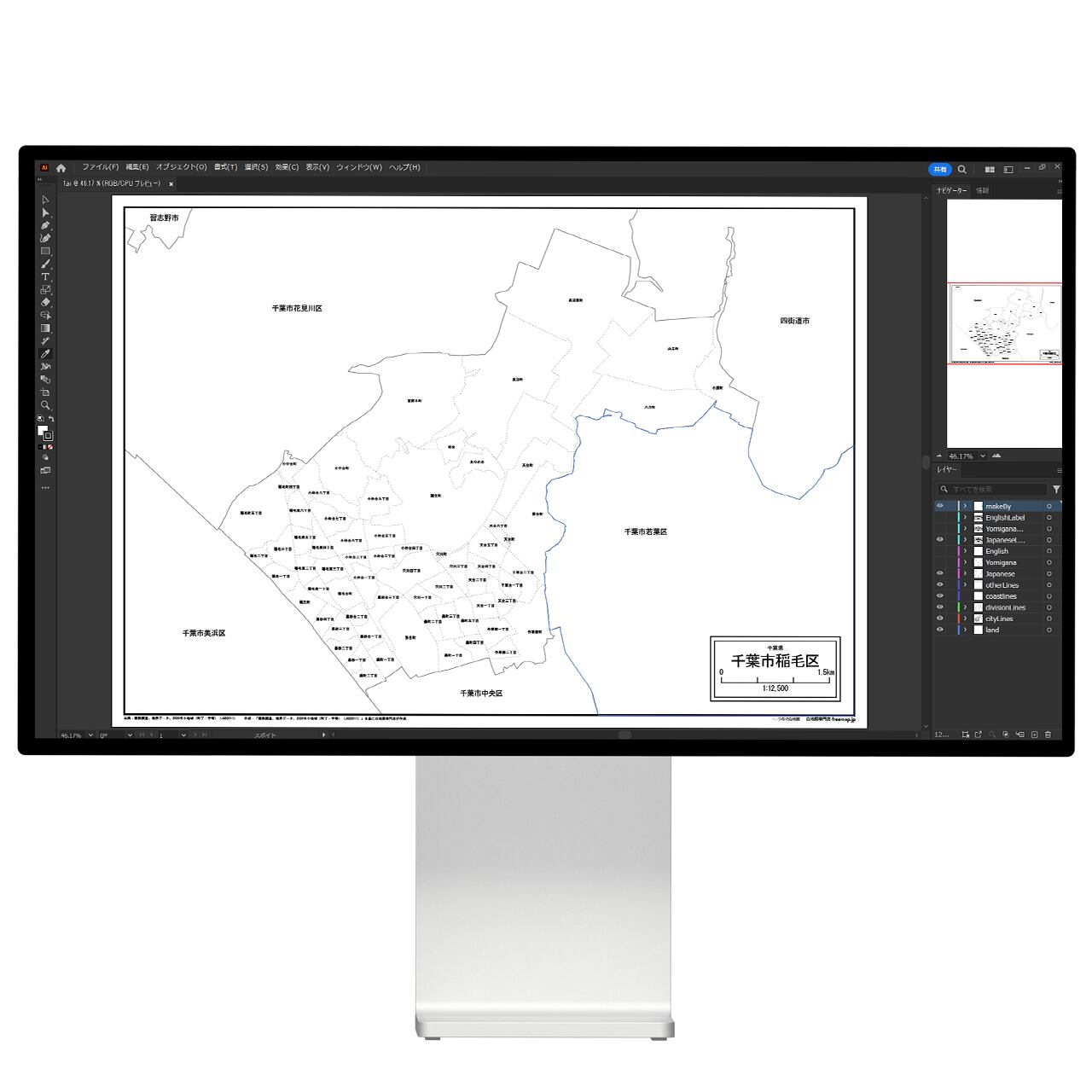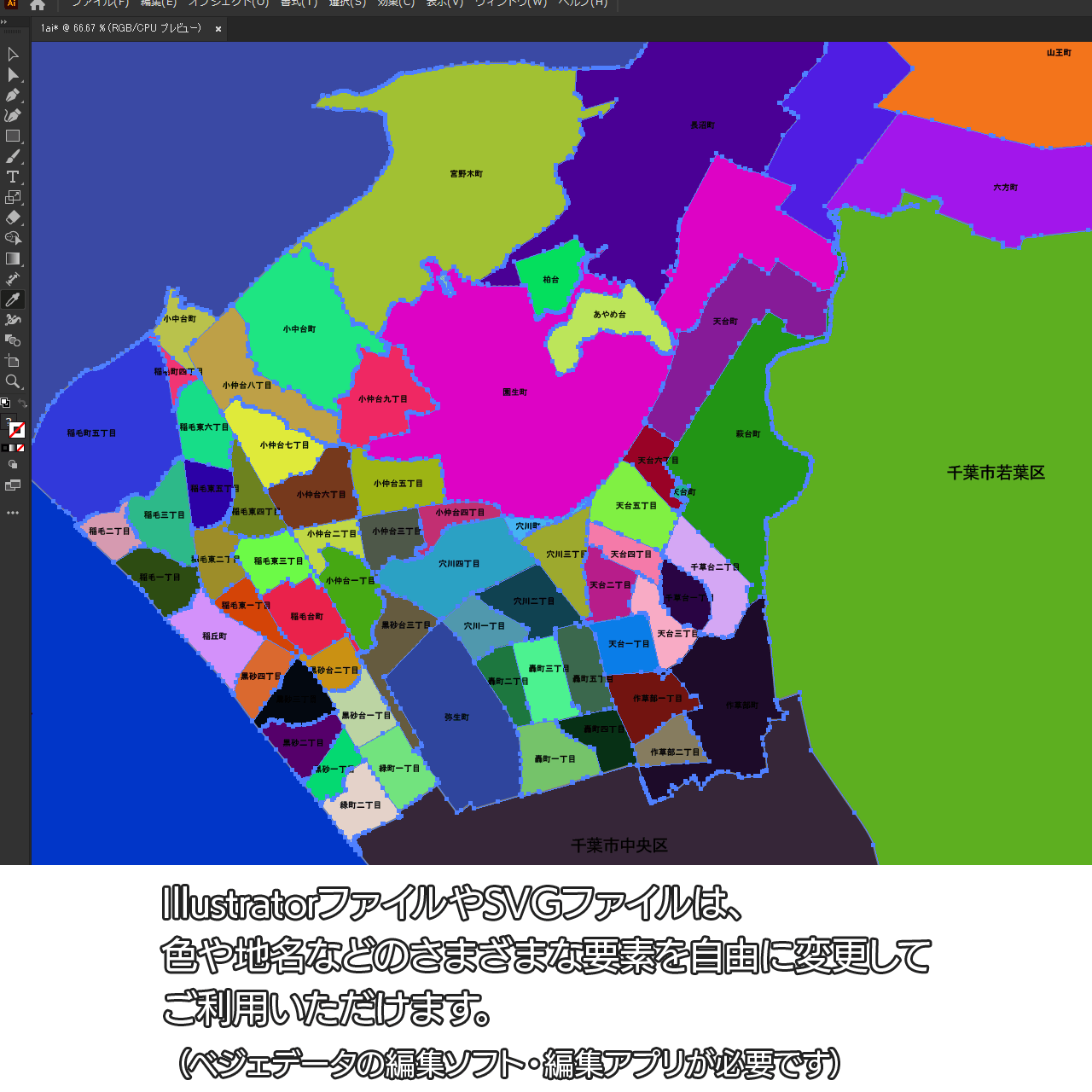 千葉市稲毛区:町名も記載の地図データ(PDF・Aiファイル)