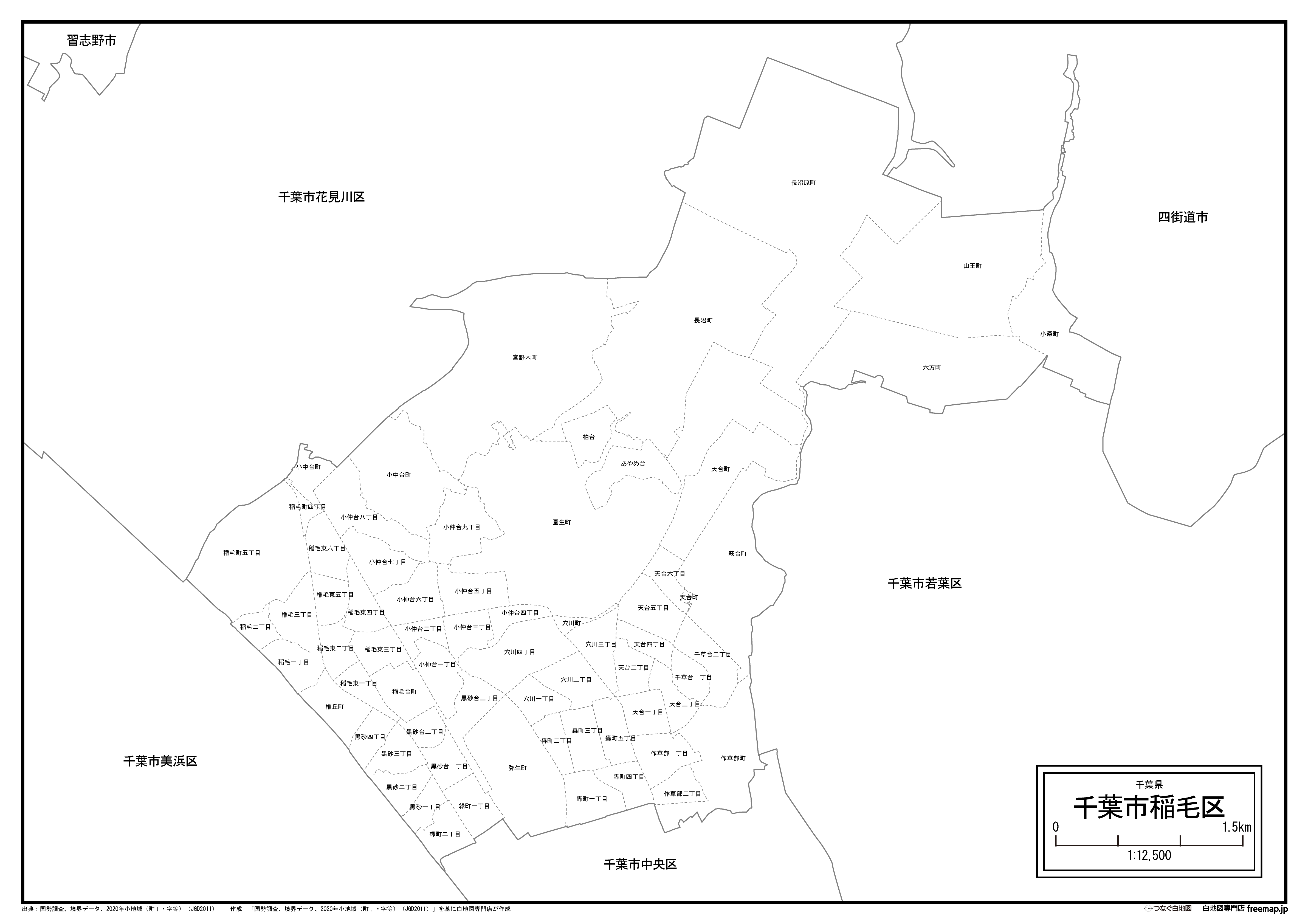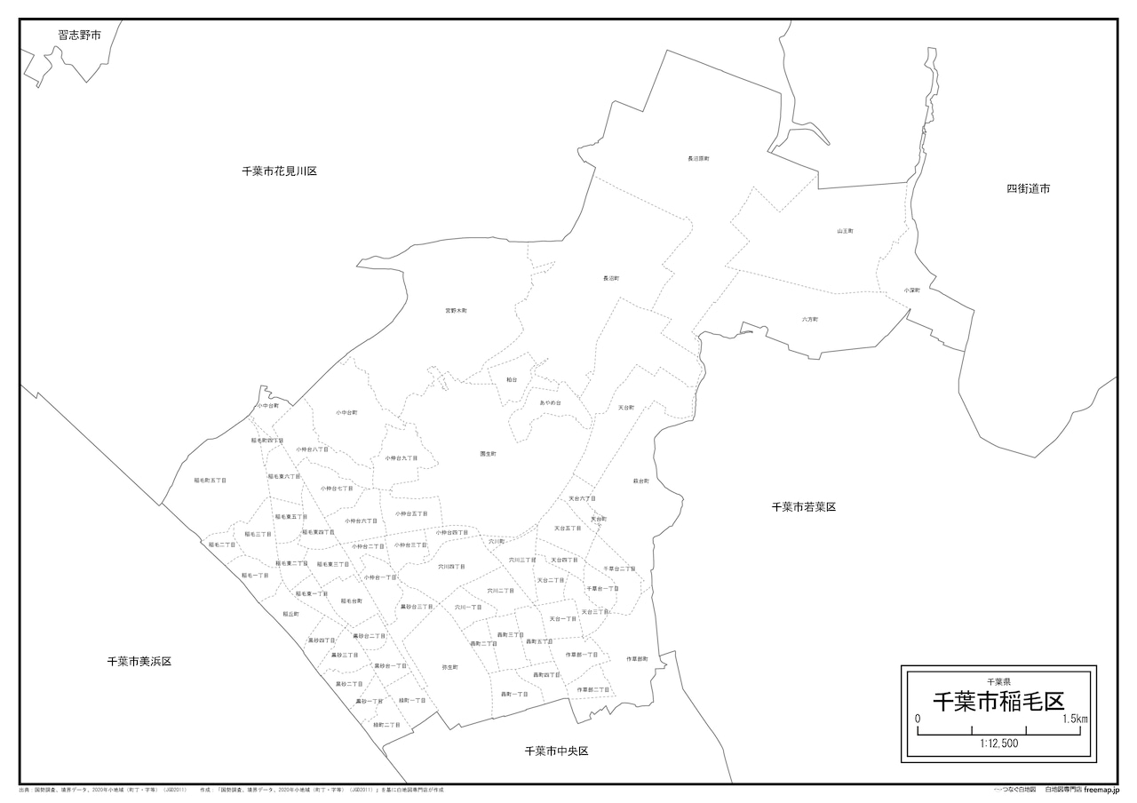 千葉市稲毛区の町名(町丁目)も記載した地図データです。