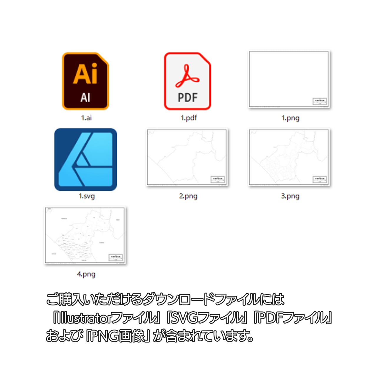 PDF・Ai・SVG形式がセットでご利用いただけます。