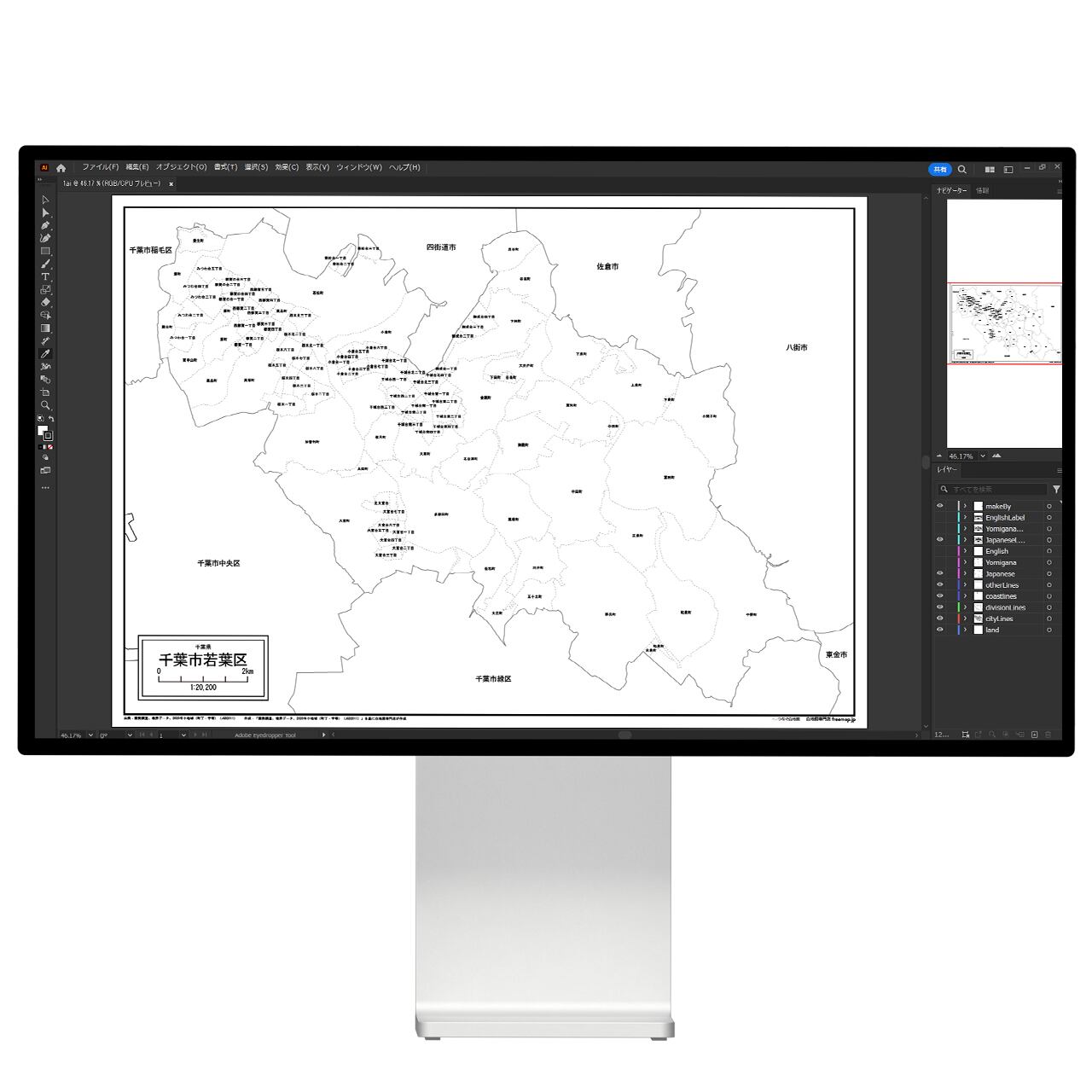千葉市若葉区:町名も記載の地図データ(PDF・Aiファイル)
