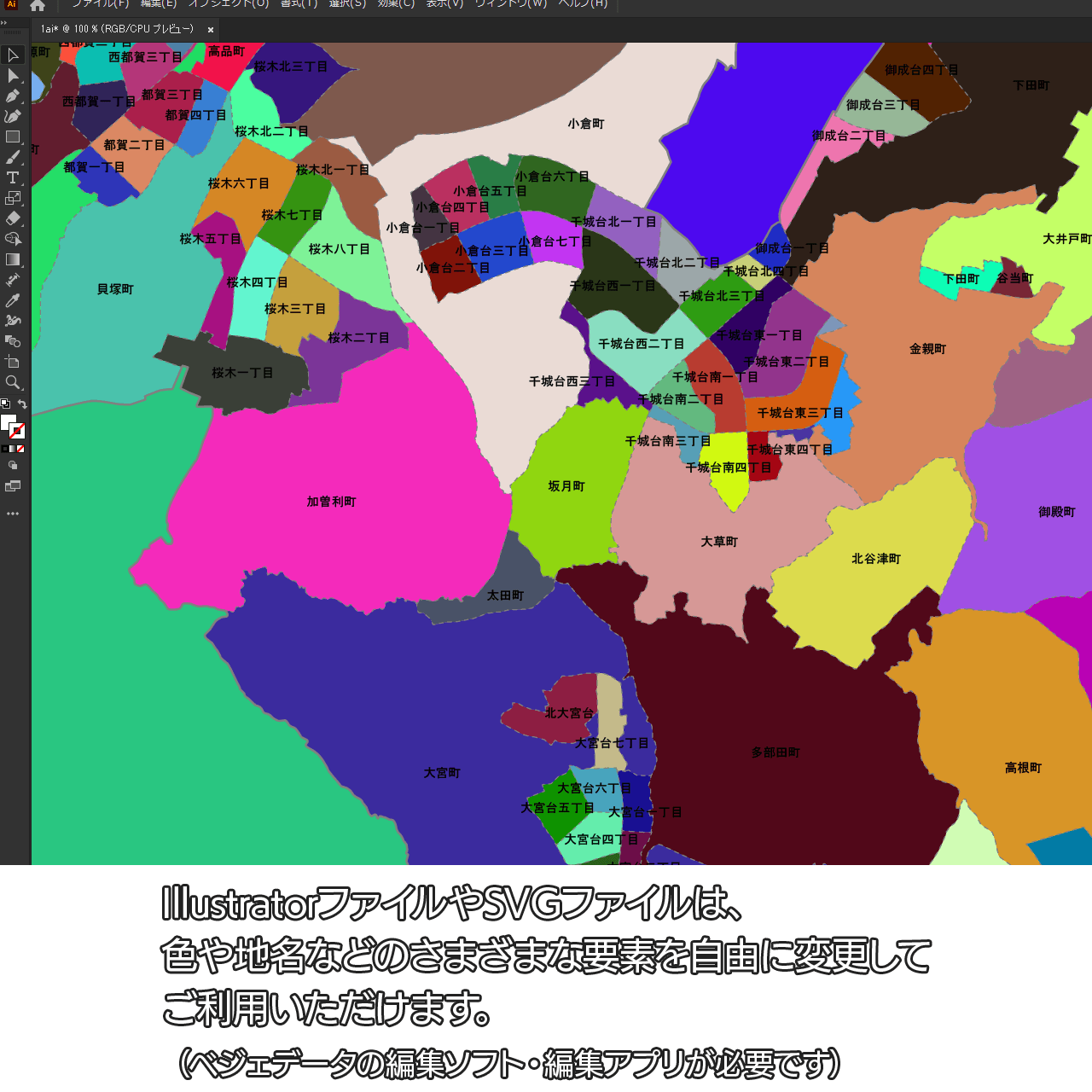 AiファイルはAdobe Illustratorで再編集可能な白地図データです。