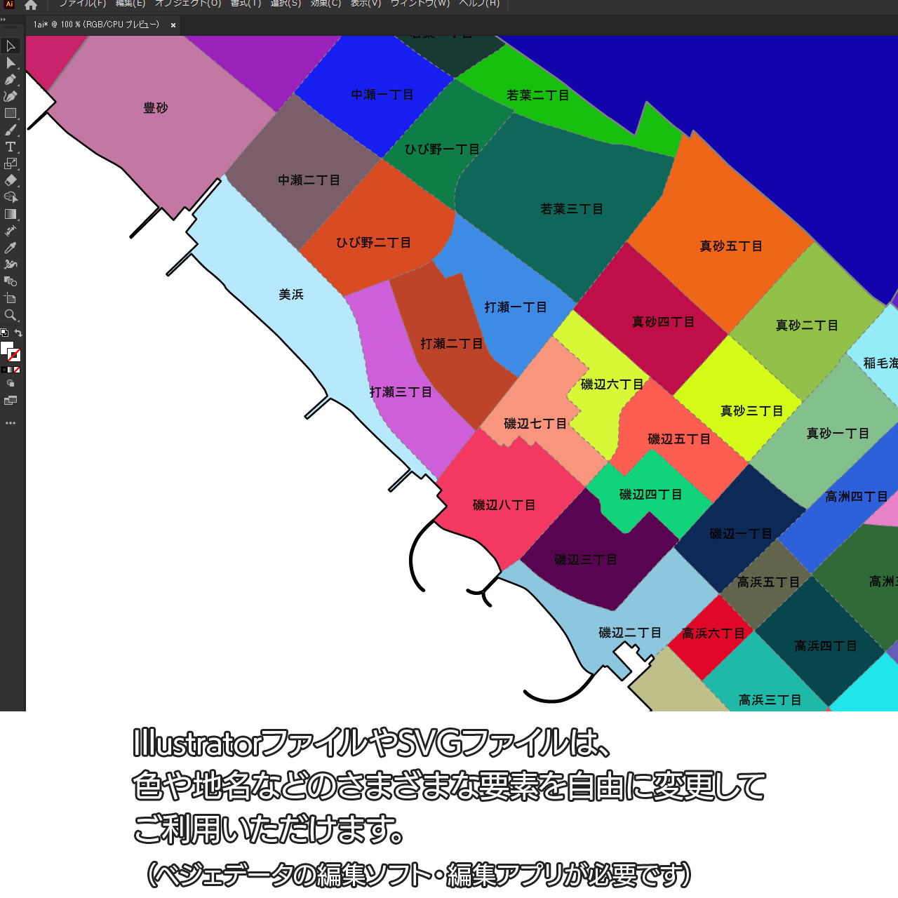 AiファイルはAdobe Illustratorで再編集可能な白地図データです。