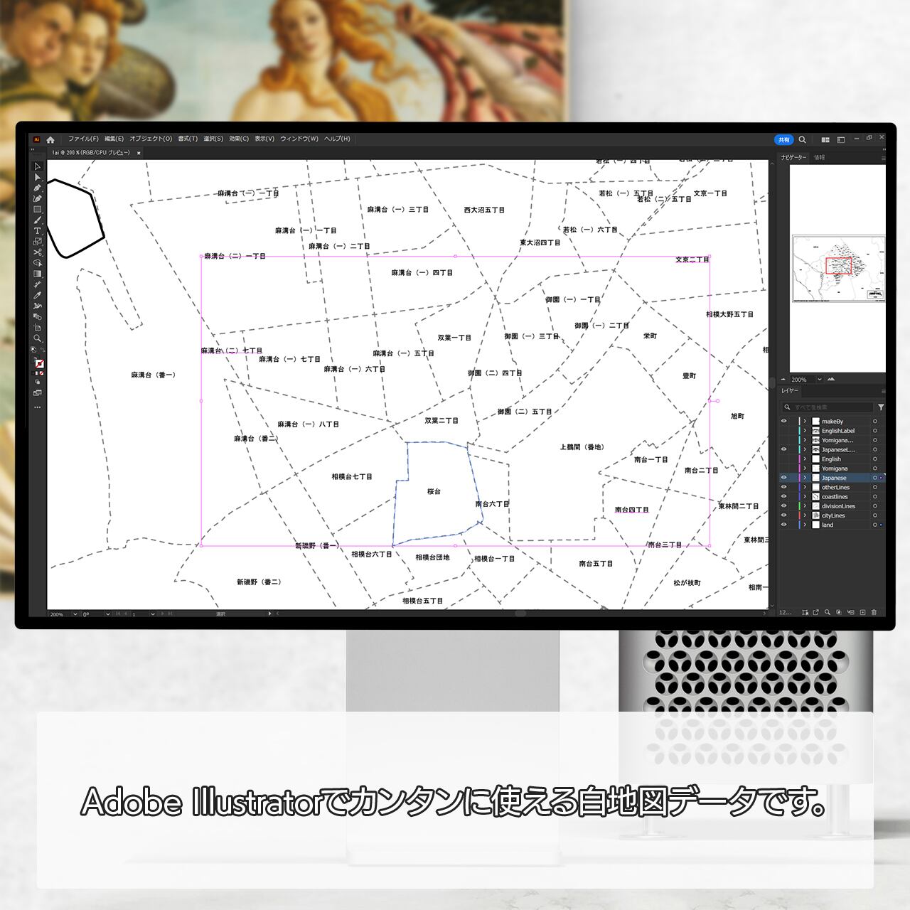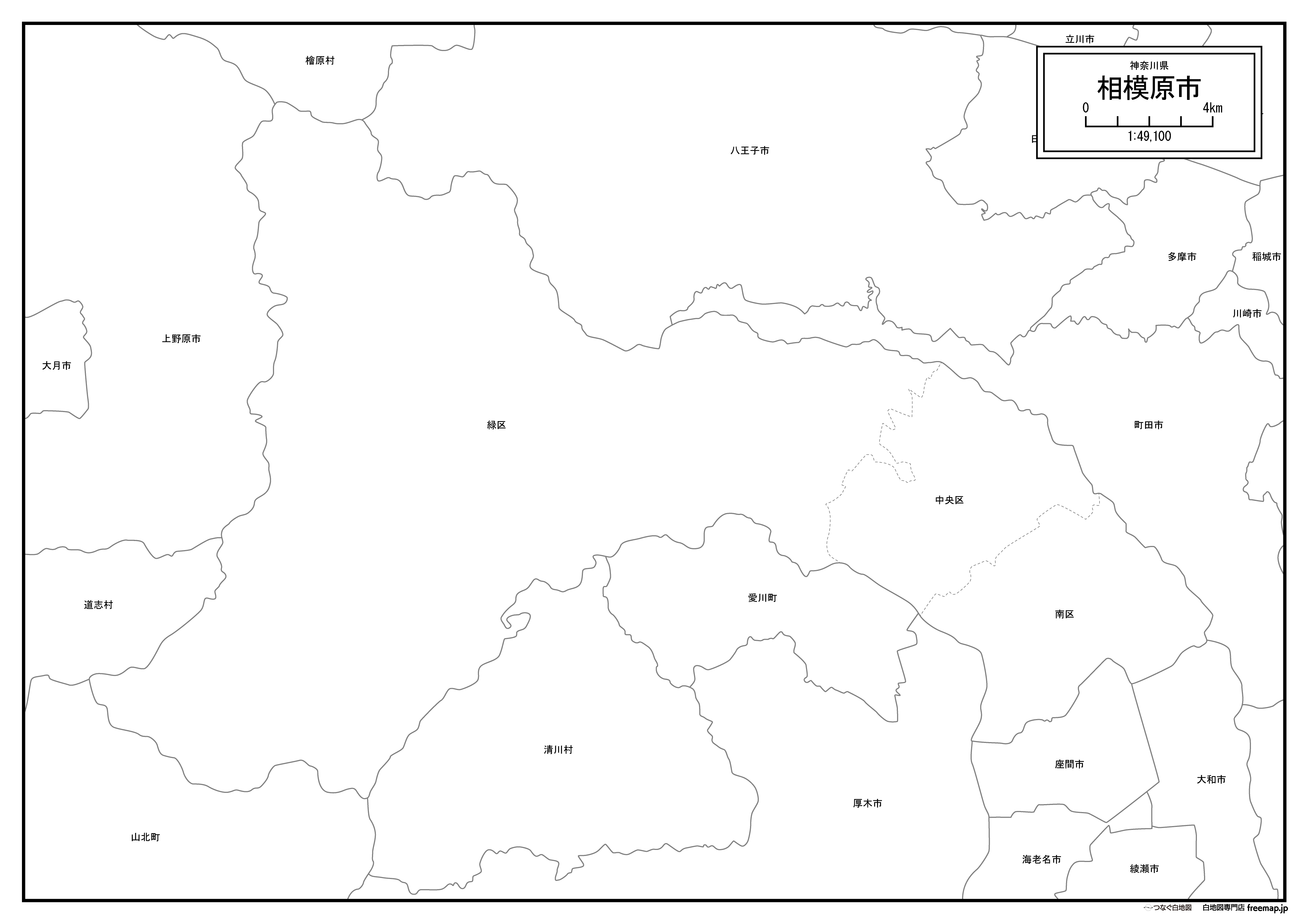 相模原市+各区の白地図セット:町名も記載の地図データ(PDF・Aiファイル)
