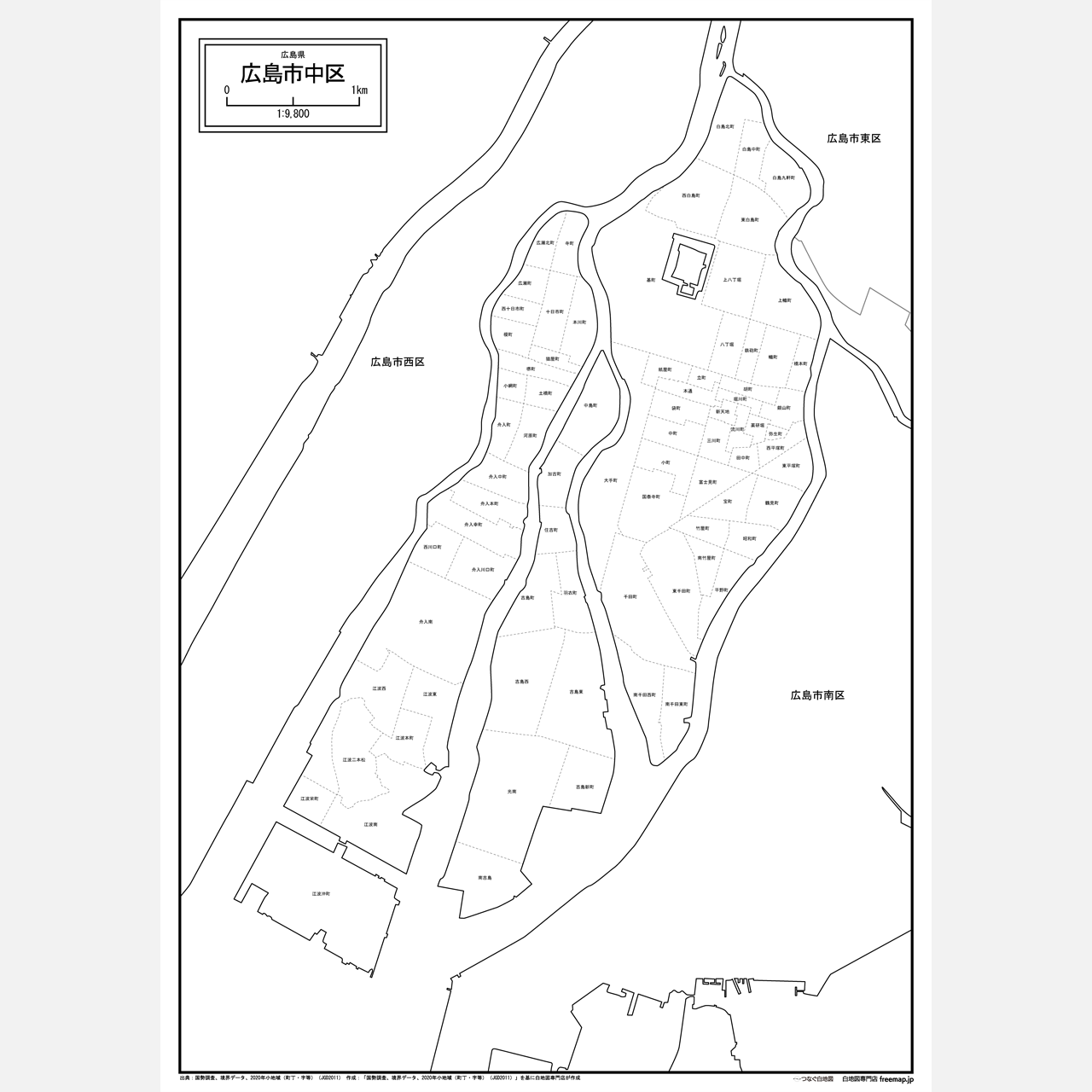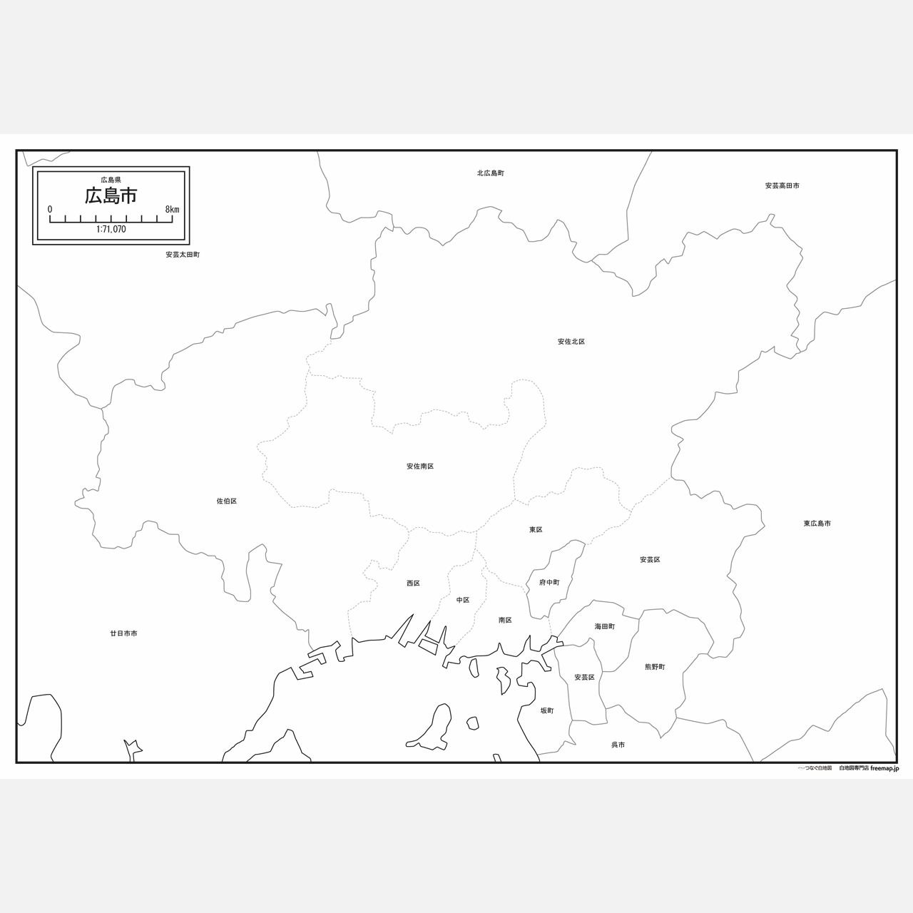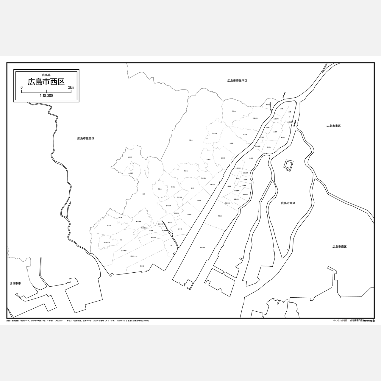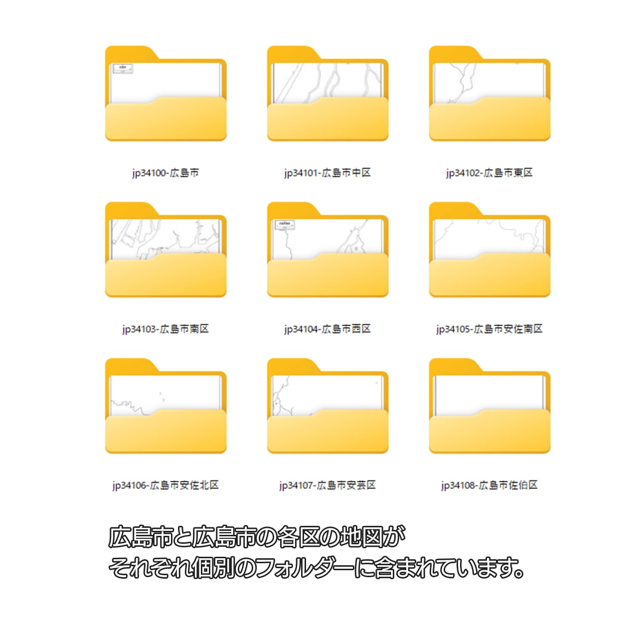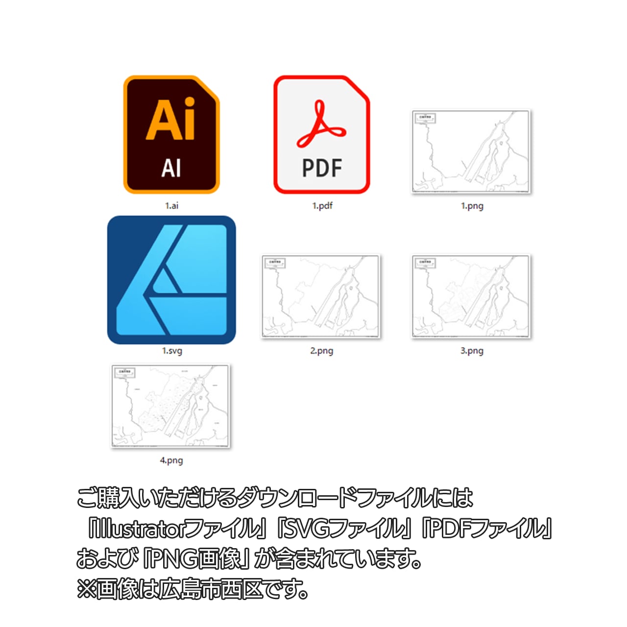 広島市全体の白地図と各区のセット:町名も記載の地図データ(PDF・Aiファイル)