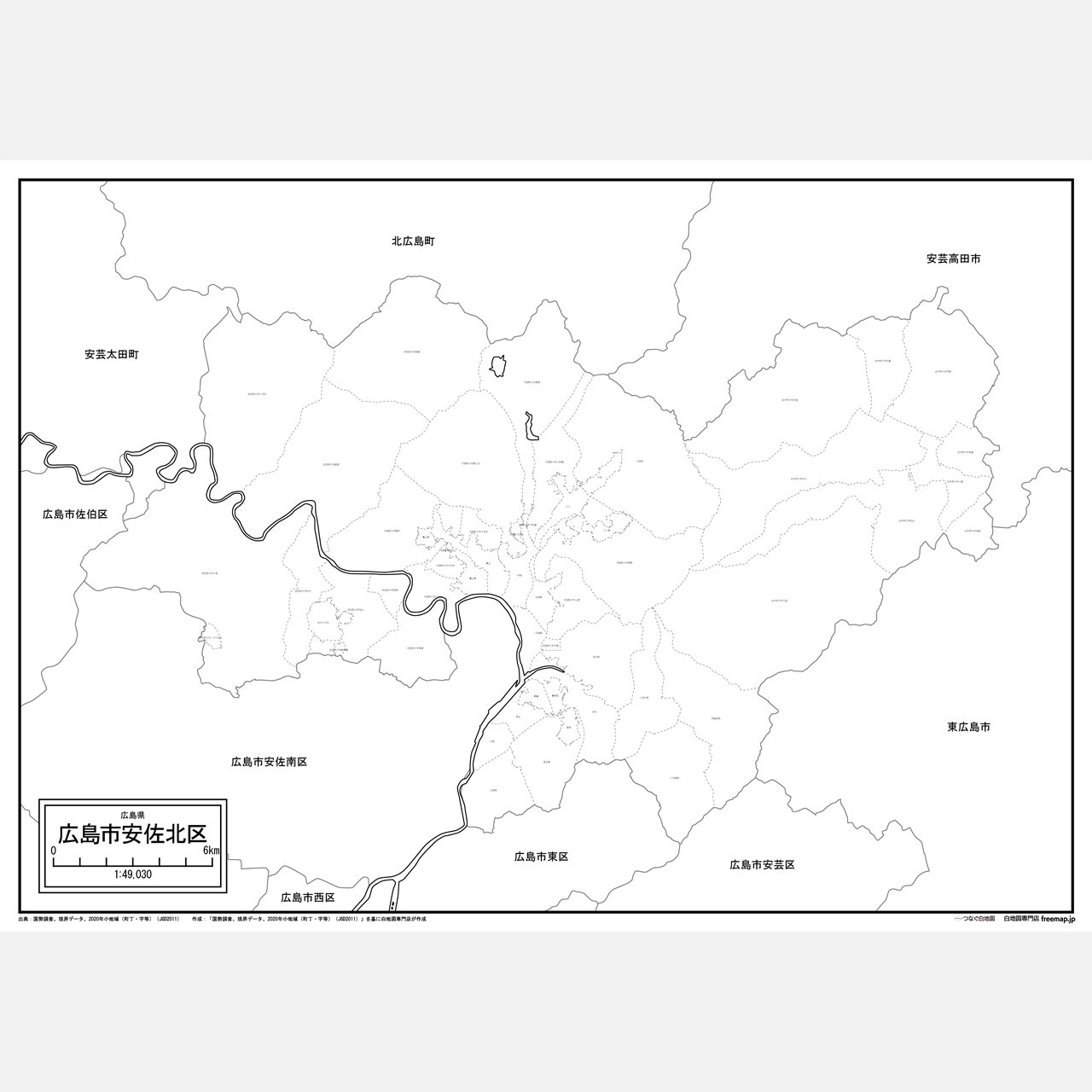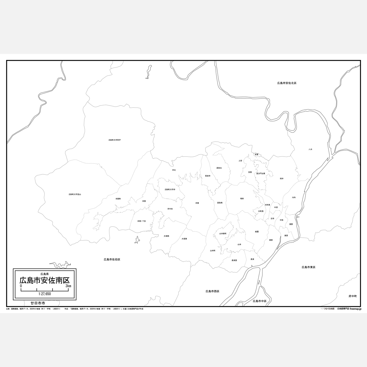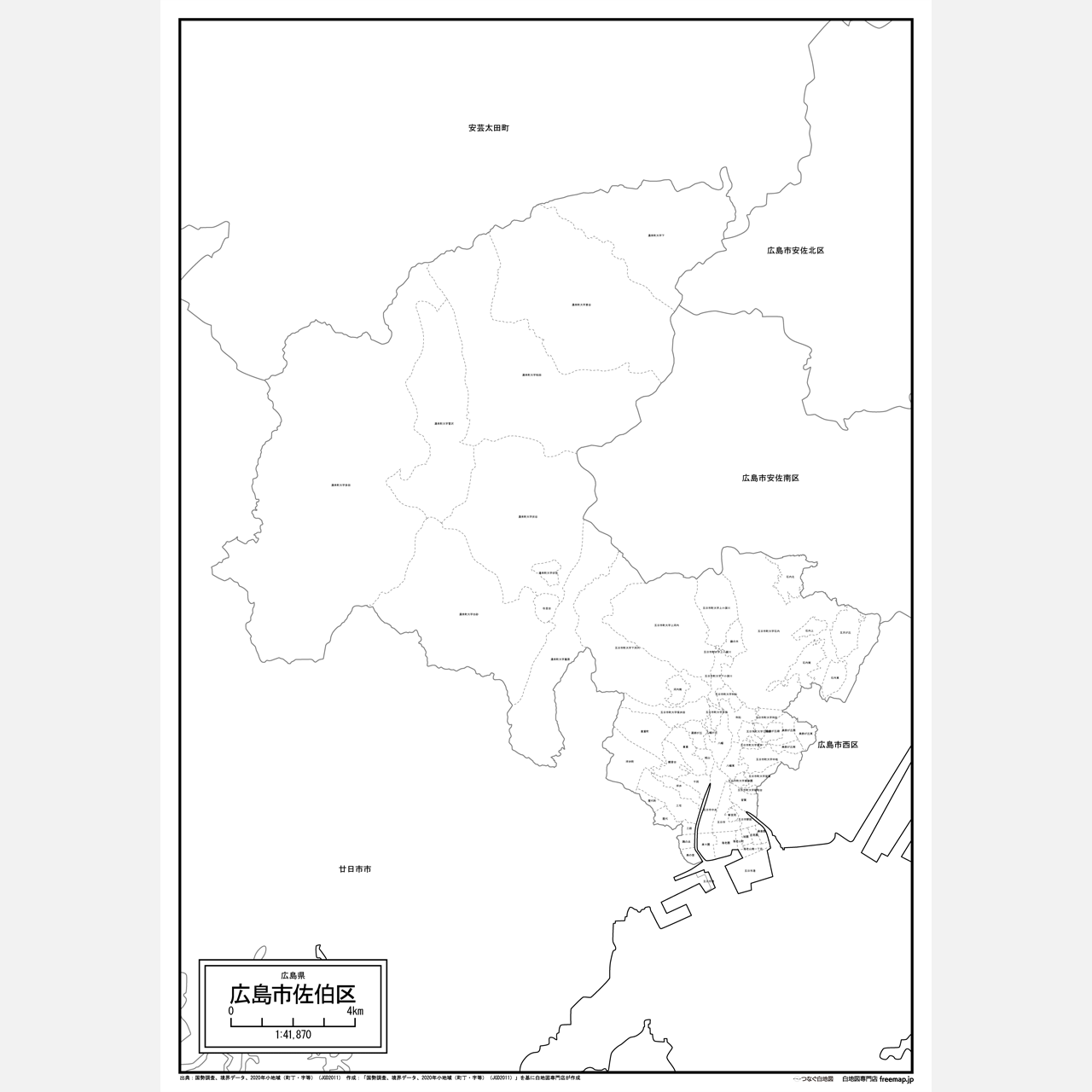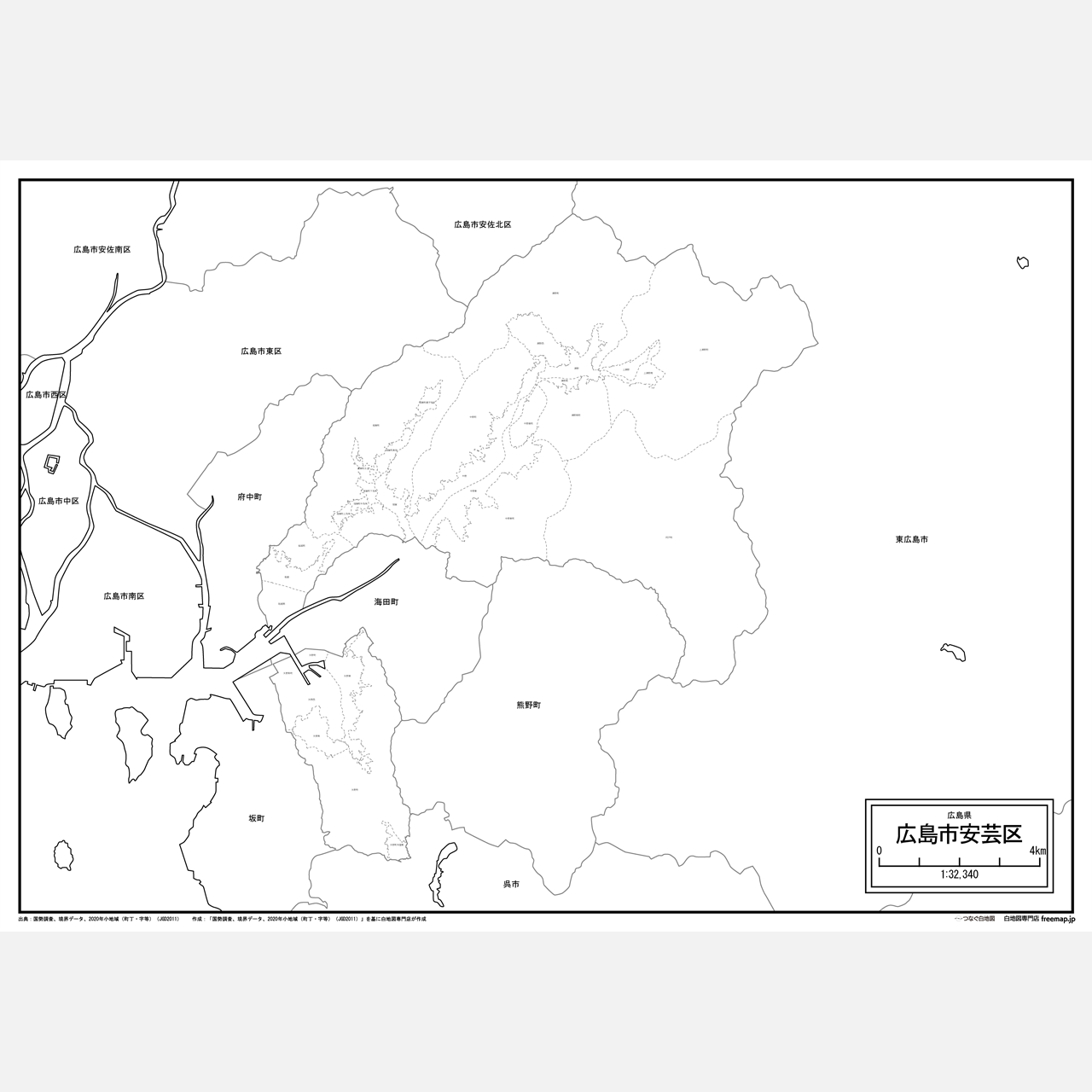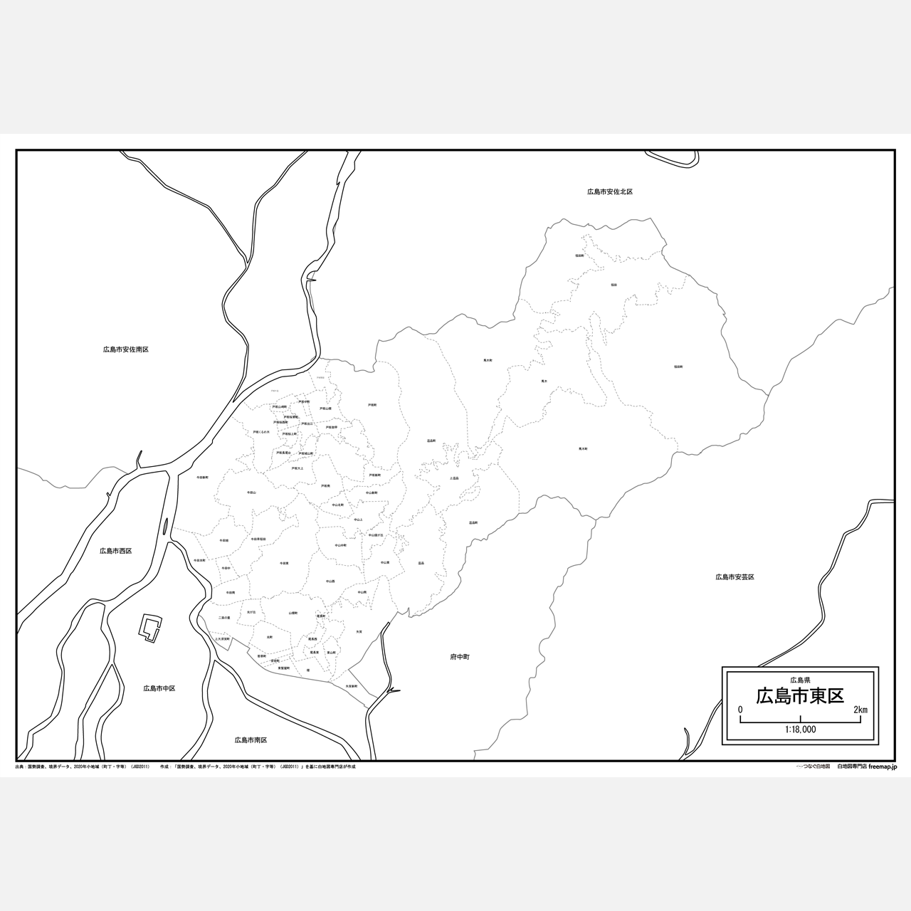 広島市全体の白地図と各区のセット:町名も記載の地図データ(PDF・Aiファイル)