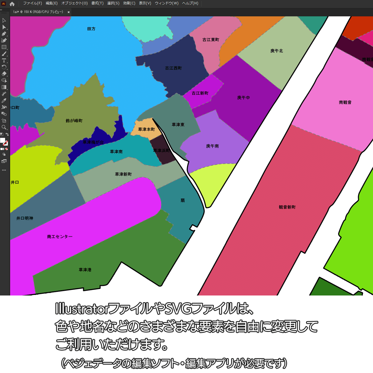 AiファイルはAdobe Illustratorで再編集可能な白地図データです。