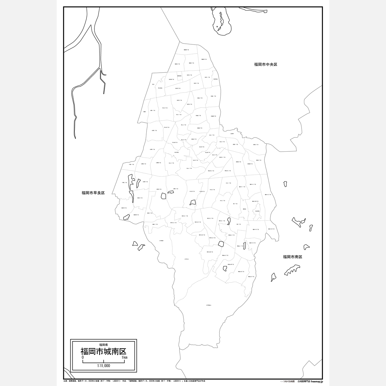 全体図以外の各区の白地図は、町名(町丁目)も記載しています。