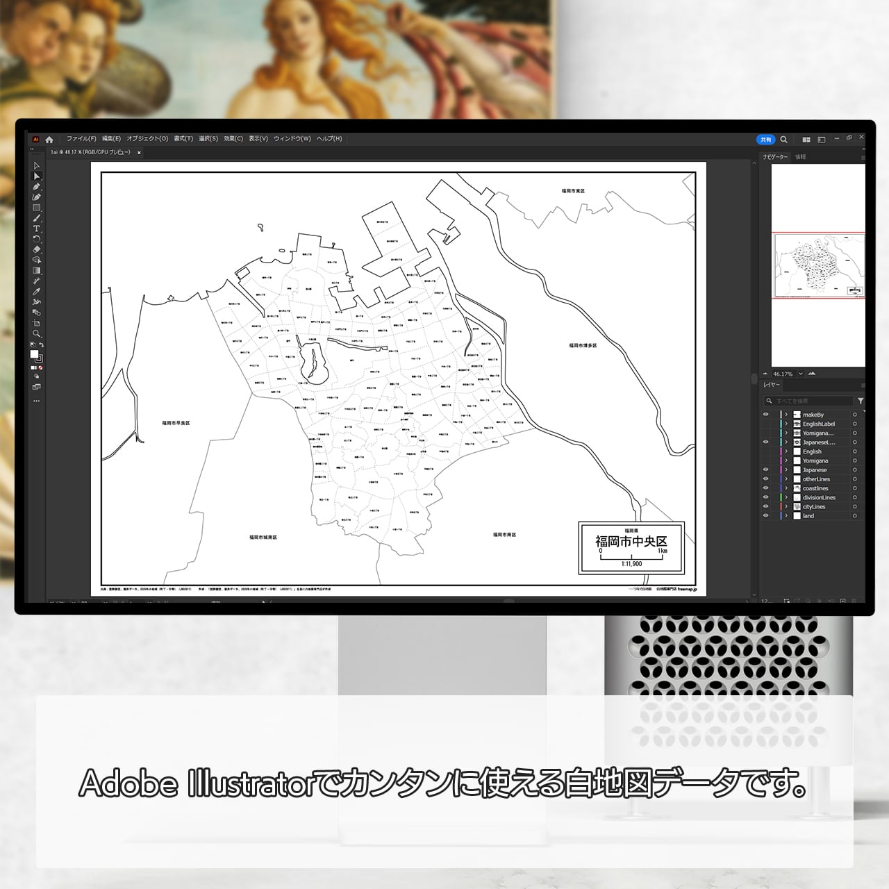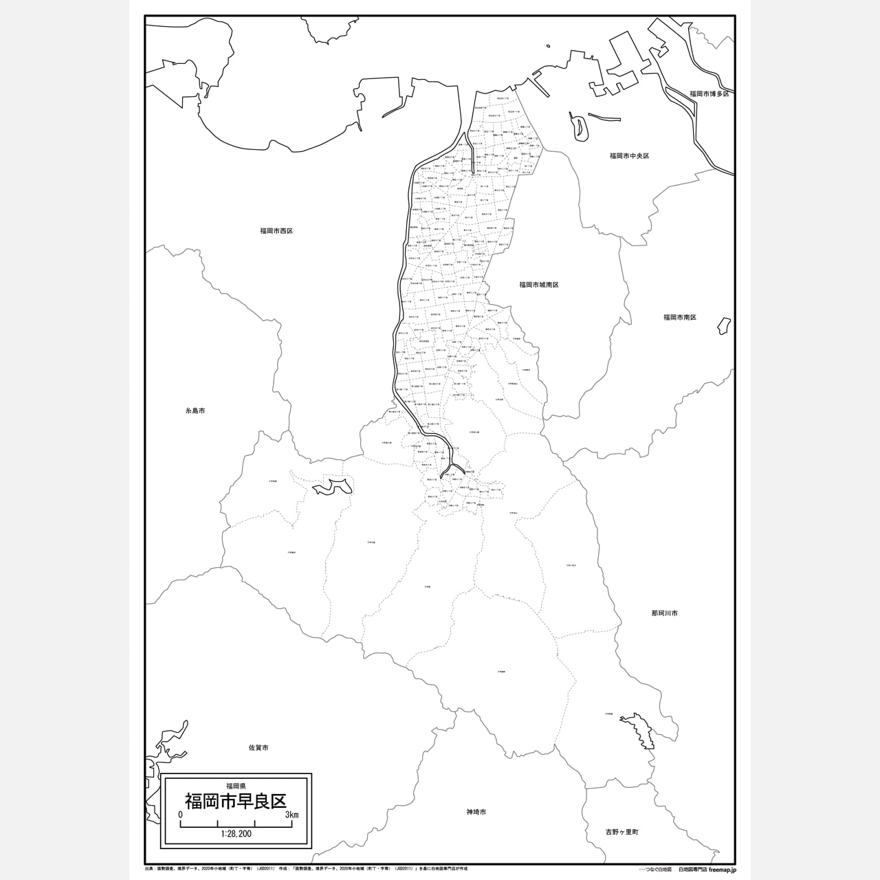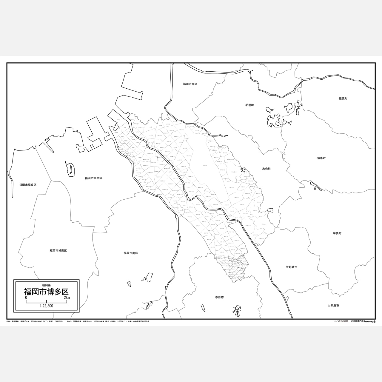 福岡市全体図と各区のセット:町名も記載の地図データ(PDF・Aiファイル)