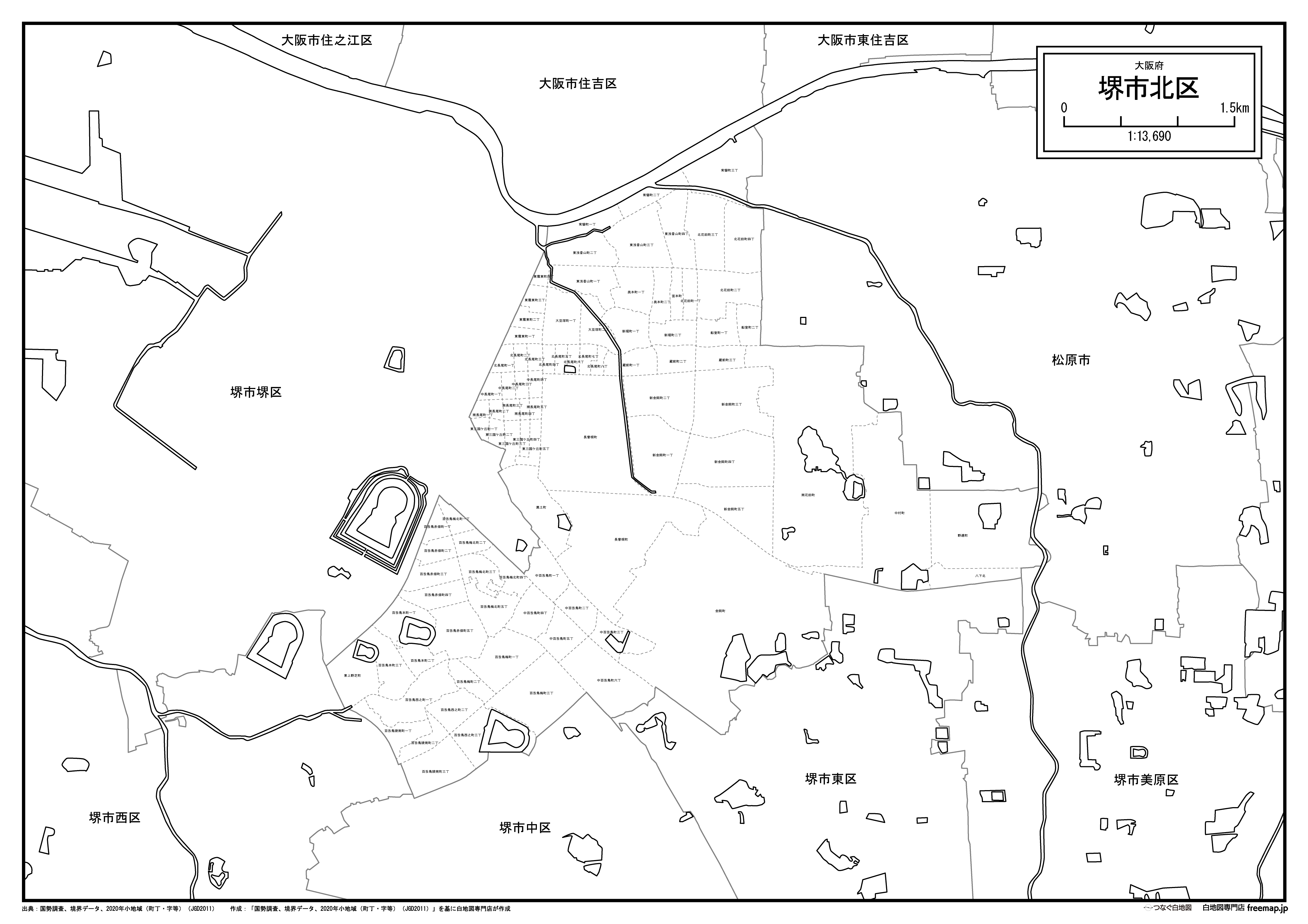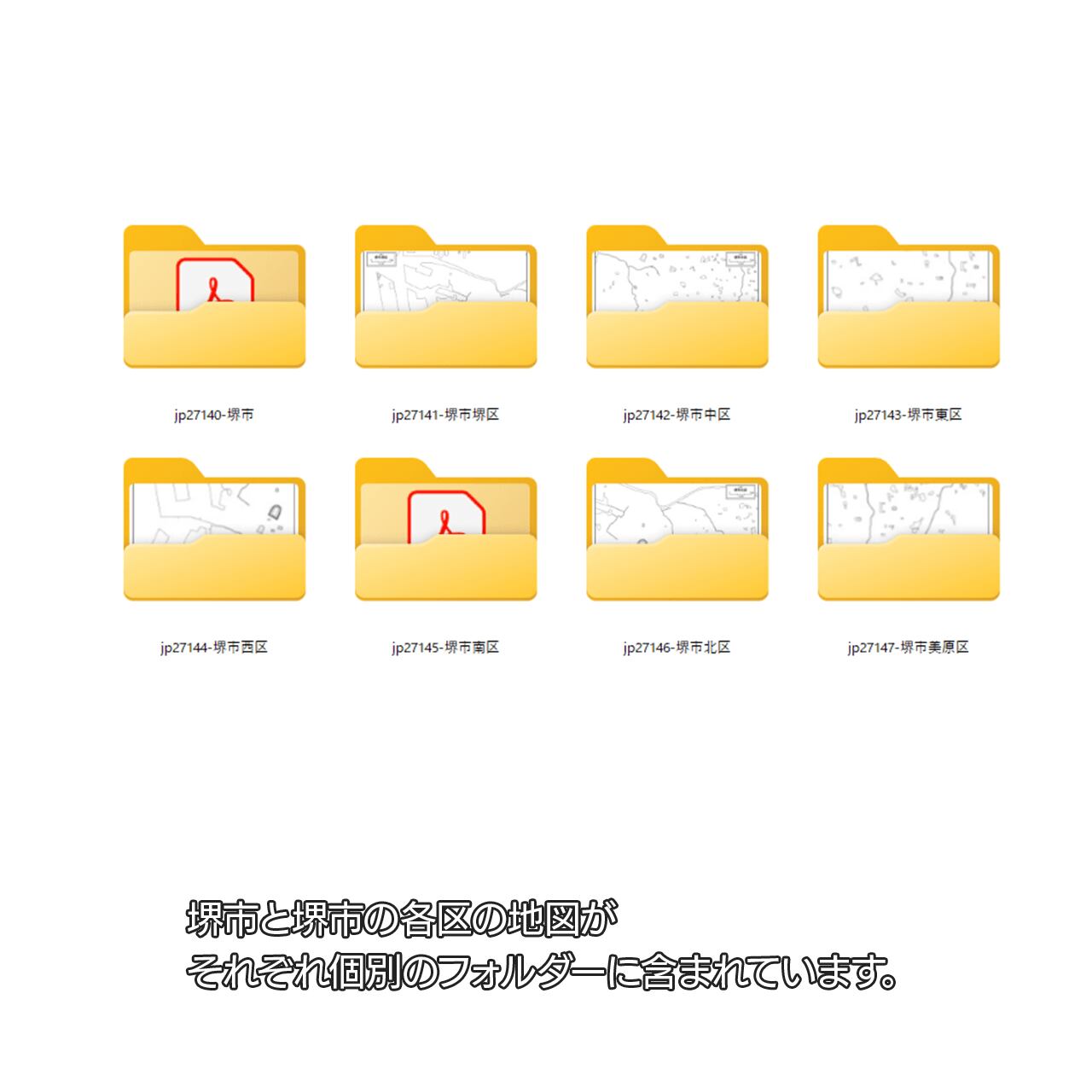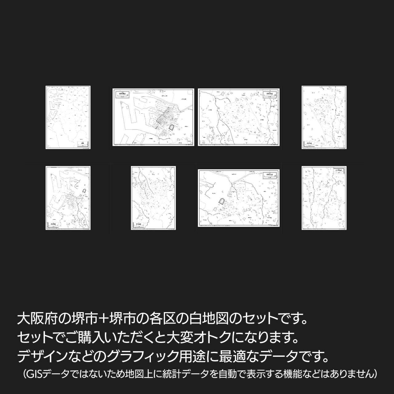 大阪府堺市+各7区のセット:町名も記載の地図データ(PDF・Aiファイル)