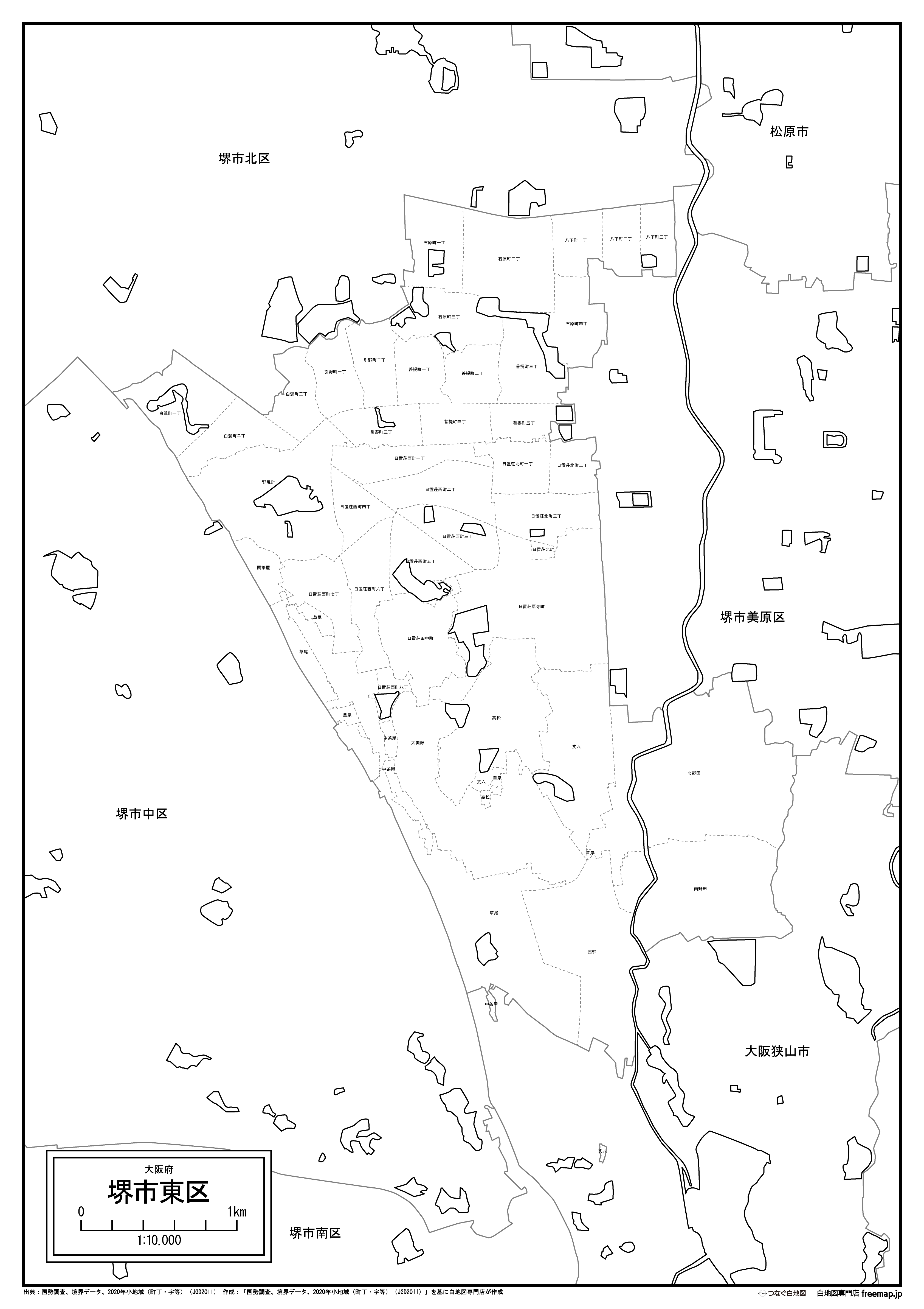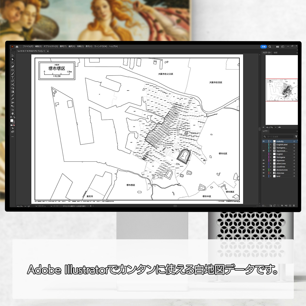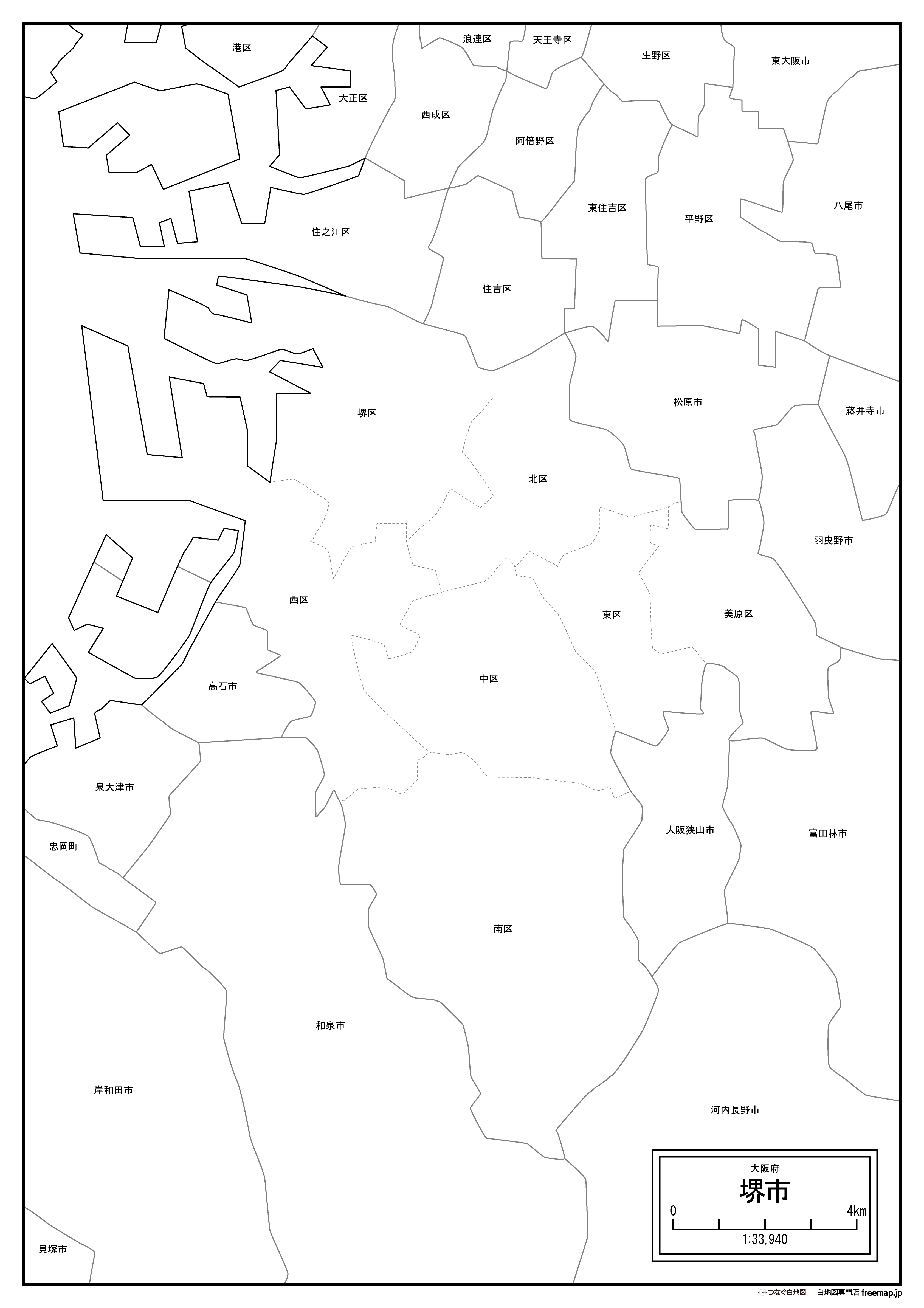 大阪府堺市+各7区のセット:町名も記載の地図データ(PDF・Aiファイル)