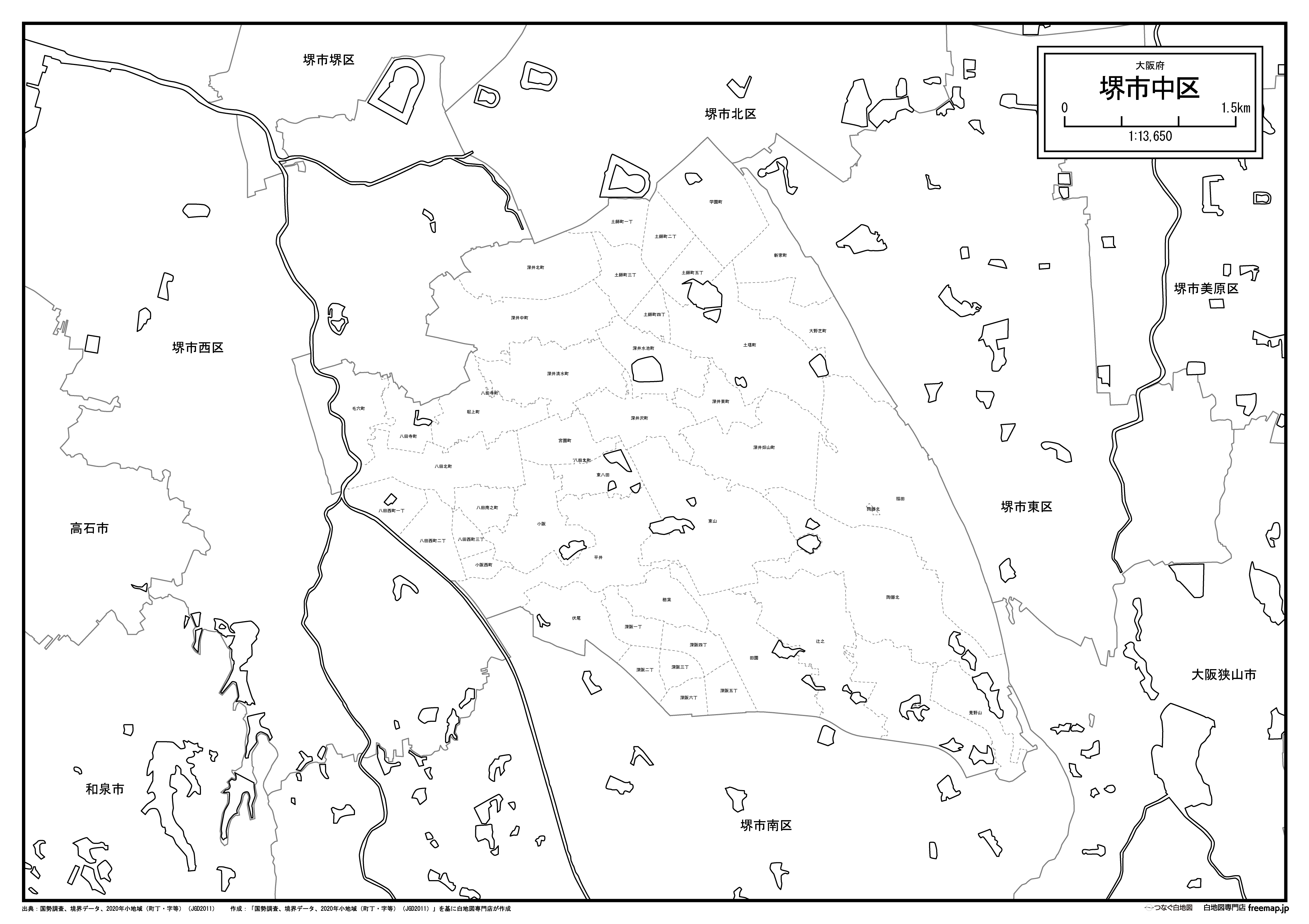 堺市中区の町名(町丁目)も記載した地図データです。