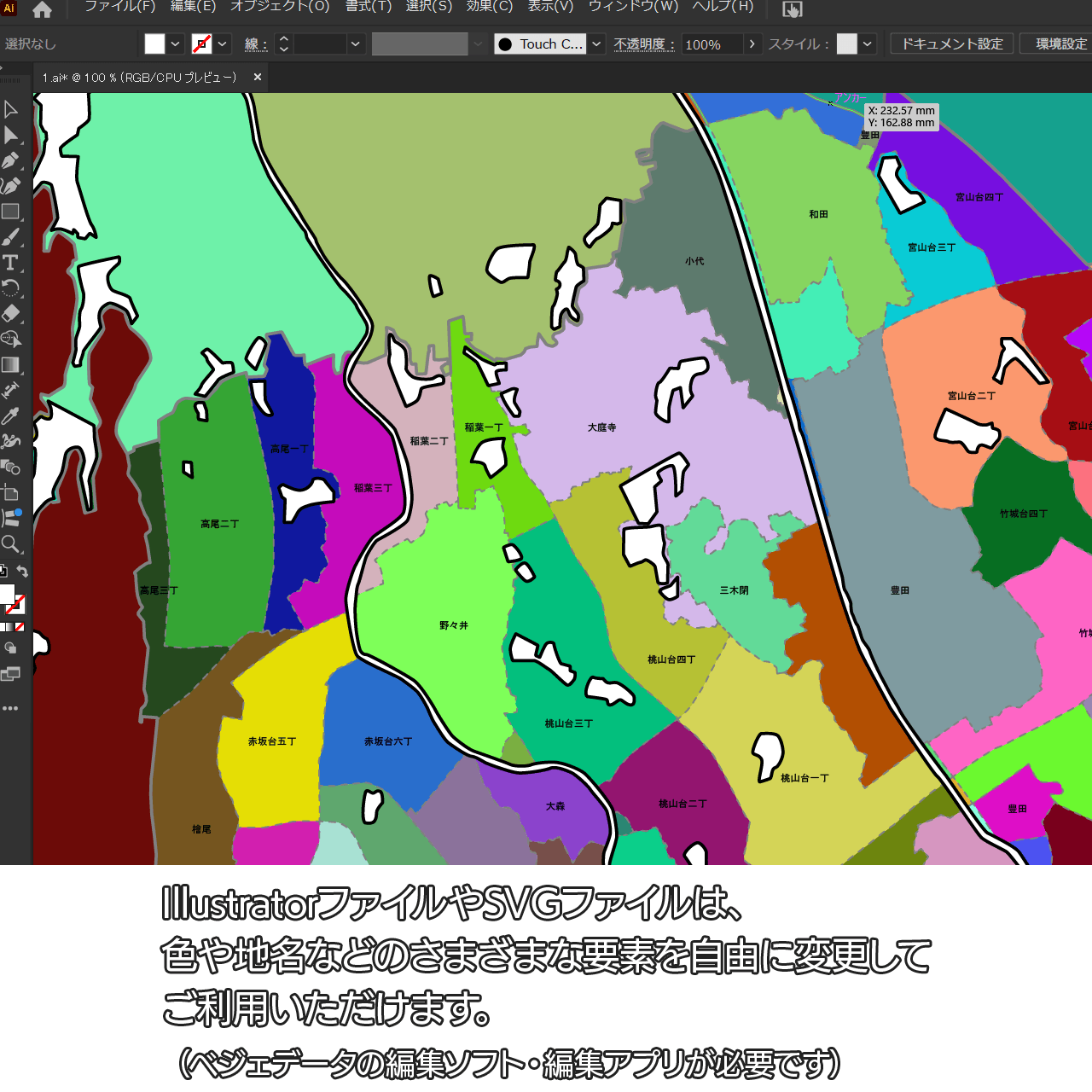 AiファイルはAdobe Illustratorで再編集可能な白地図データです。