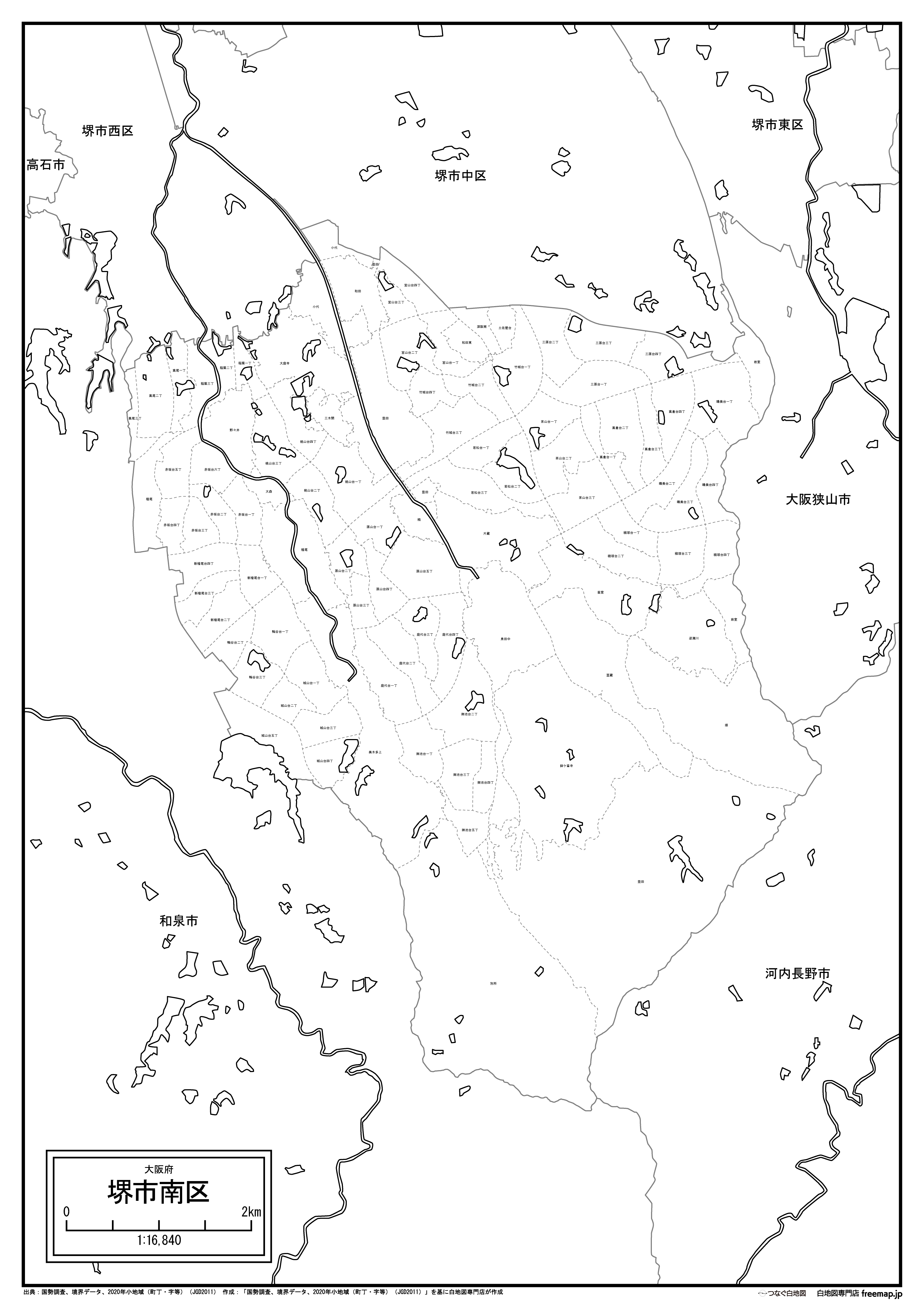 堺市南区の町名(町丁目)も記載した地図データです。